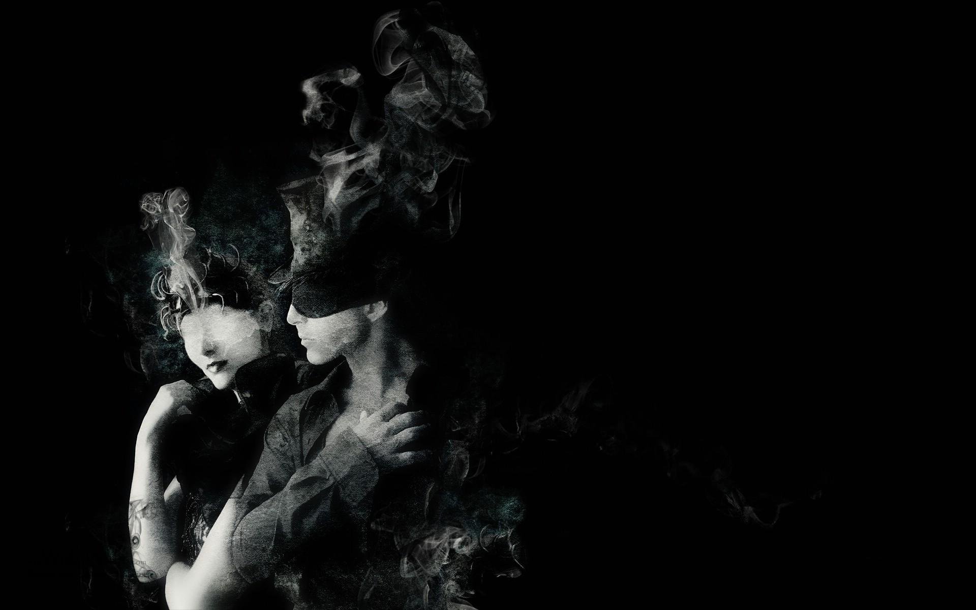 Image sur fond noir avec l'image de deux filles masquéesImage sur fond noir avec l'image de deux filles masquées