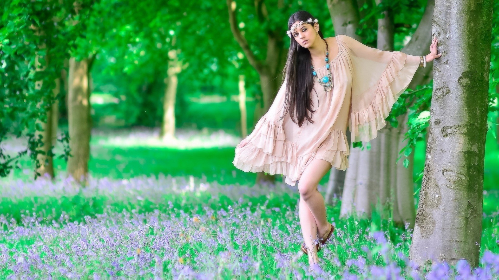 Fille asiatique en écharpe rouge se trouve dans les boisFille asiatique en écharpe rouge se trouve dans les bois