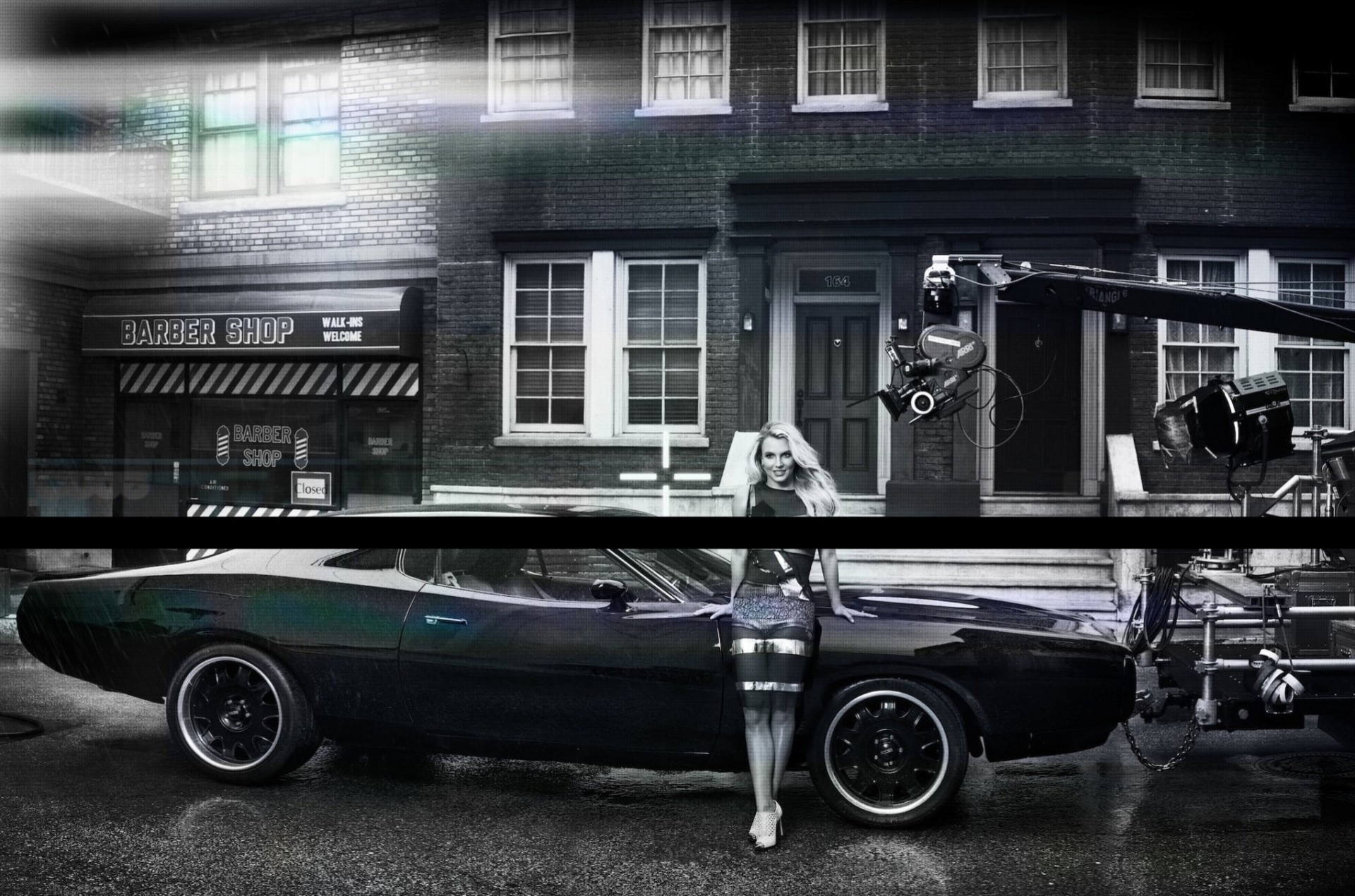 Tournage d'une jeune fille penchée sur une voiture