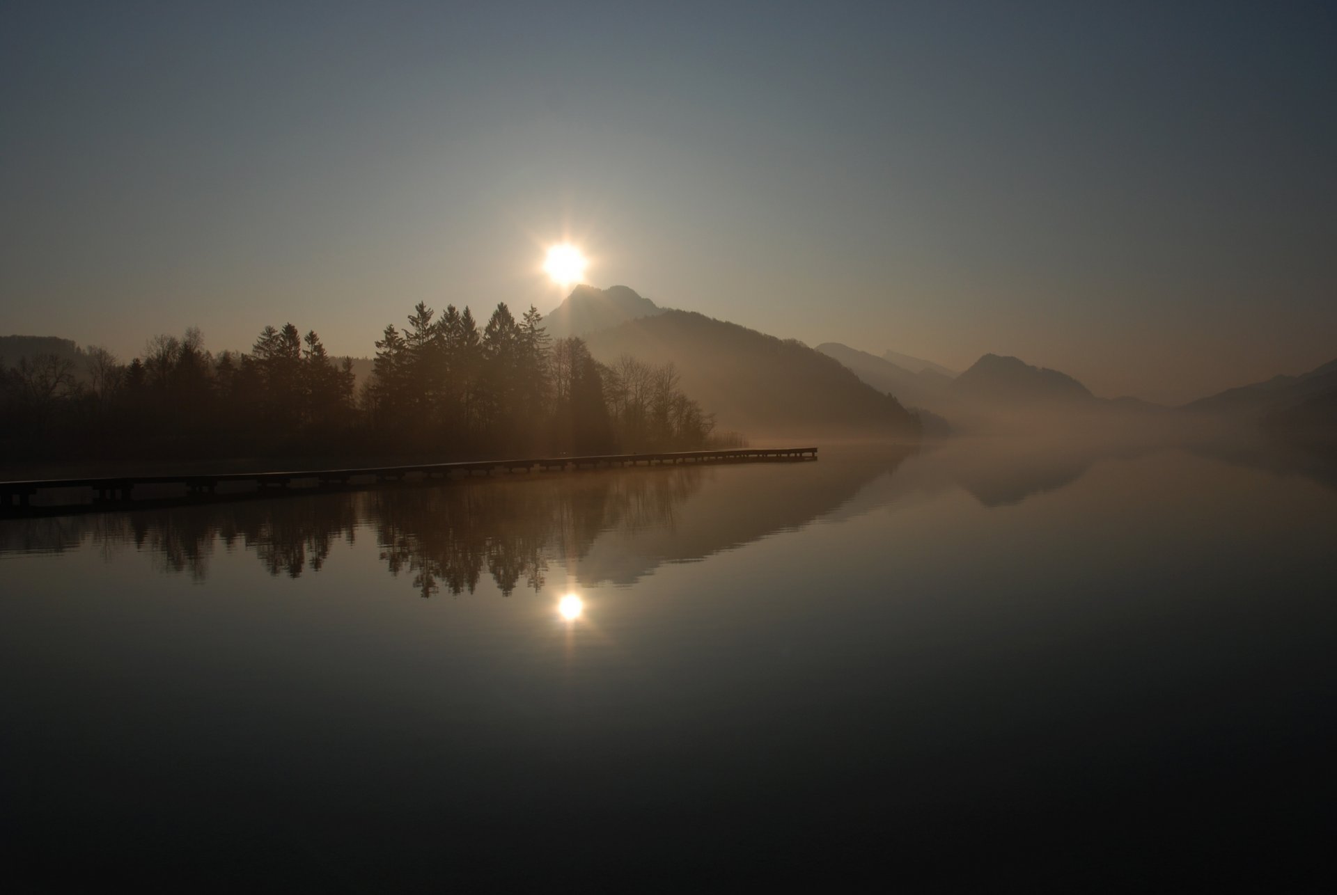 Le lever du soleil est sorti de la brume matinale des montagnes