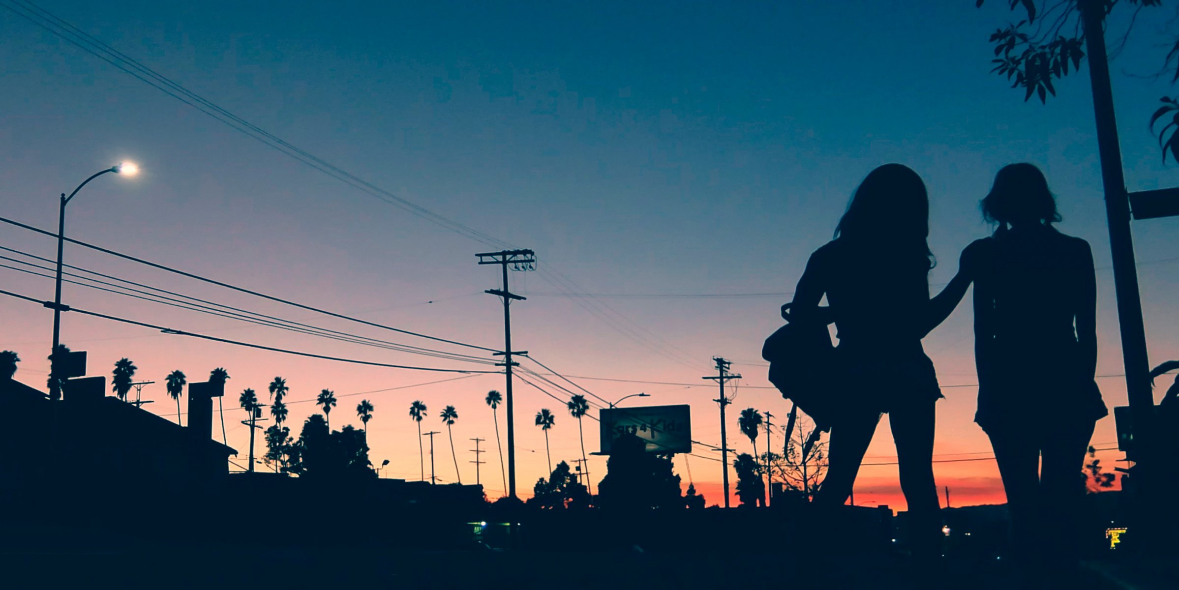 Silhouette de filles sur fond de coucher de soleil