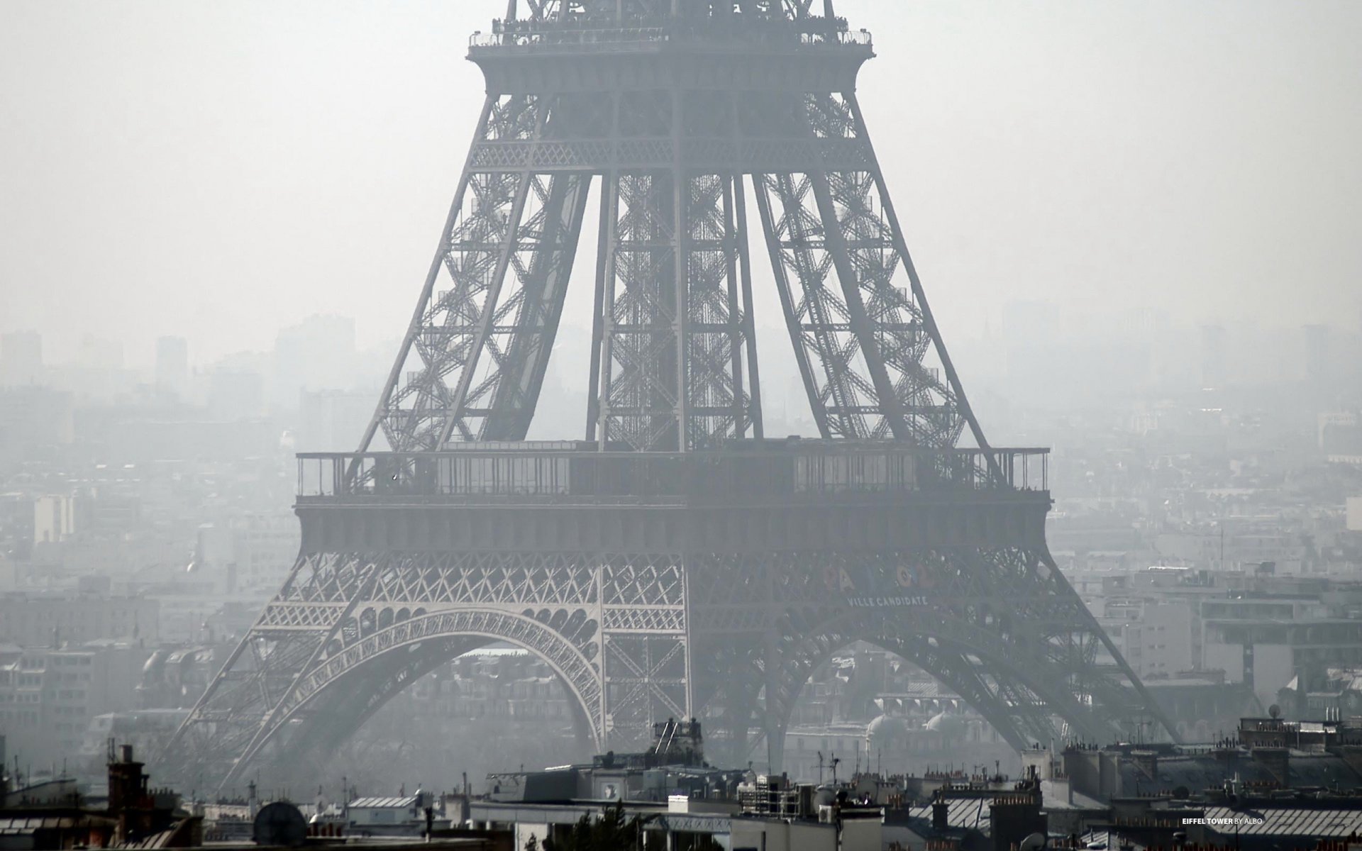 Personnages du jeu de combat sur le fond de la tour Eiffel
