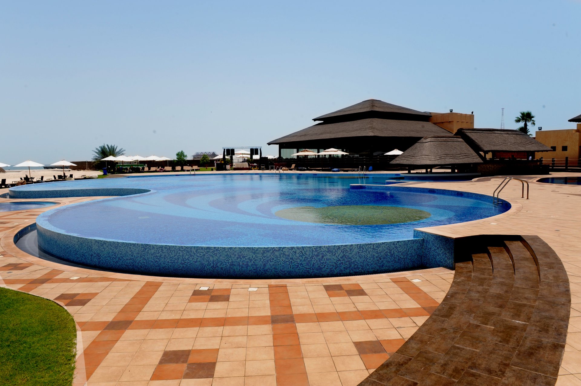 Plage de sable et l'eau de mer sur fond de ciel bleu