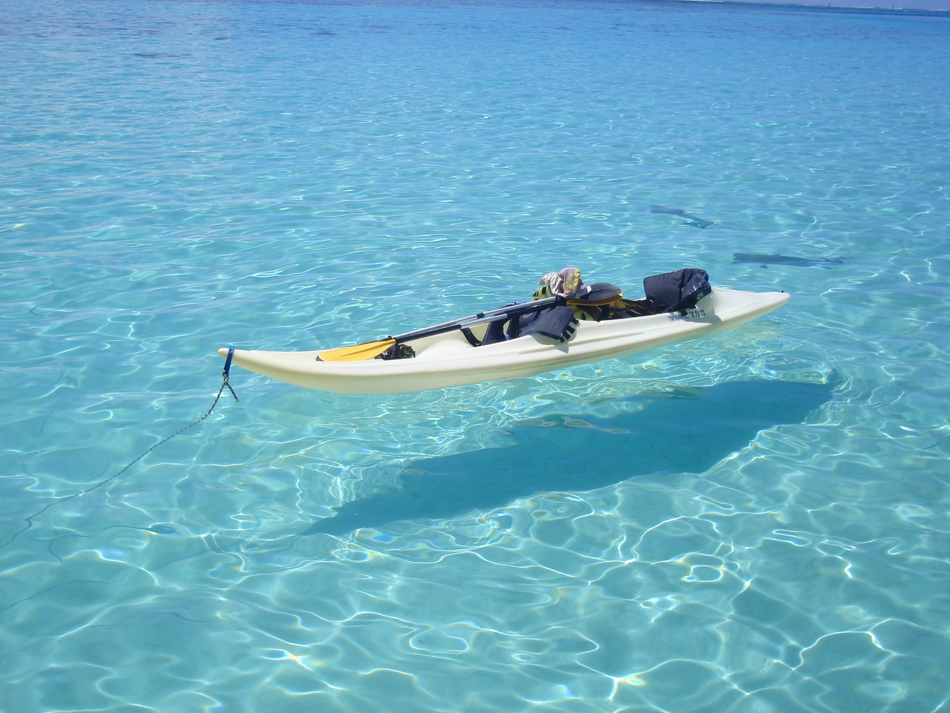 Bateau avec pagaie dans l eau cristalline - fond d'écran de bureau