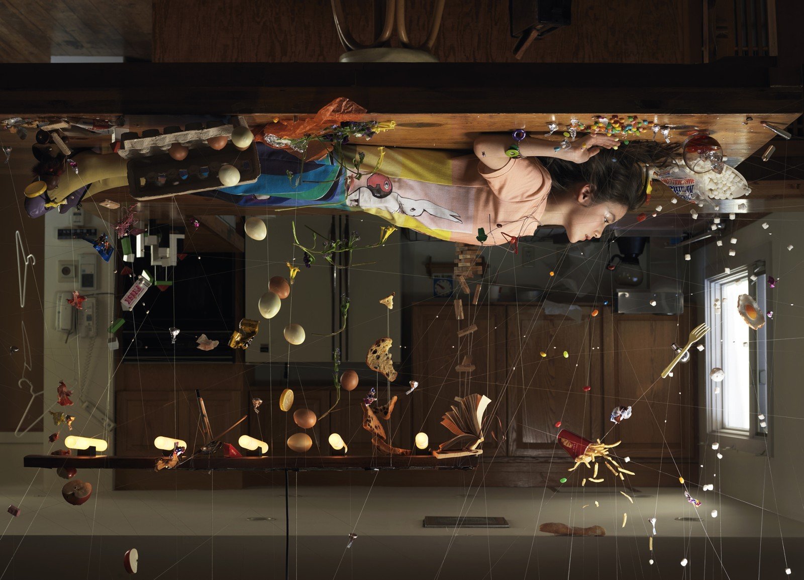La fille est sur la table avec les oeufs - fond d'écran de bureau