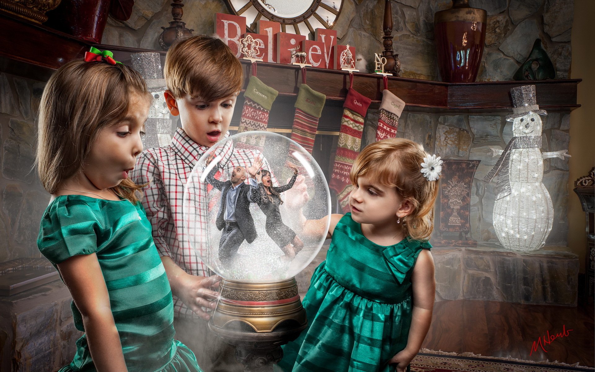 Les enfants de la csm рят sur les parents, pris dans la boule de verre - fond d'écran de bureau