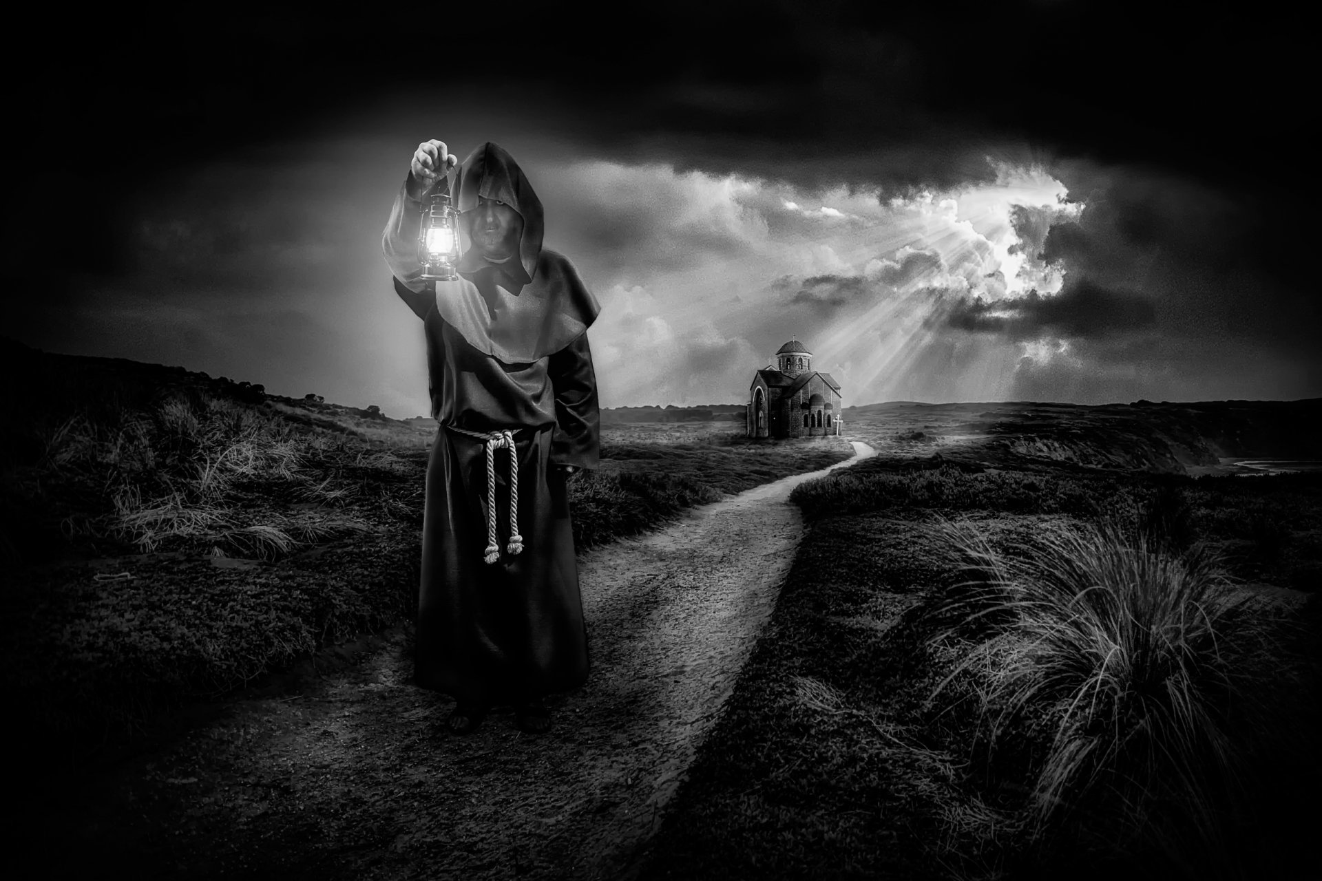 Noir et blanc de la photo. Personnes. Le moine - fond d'écran de bureau
