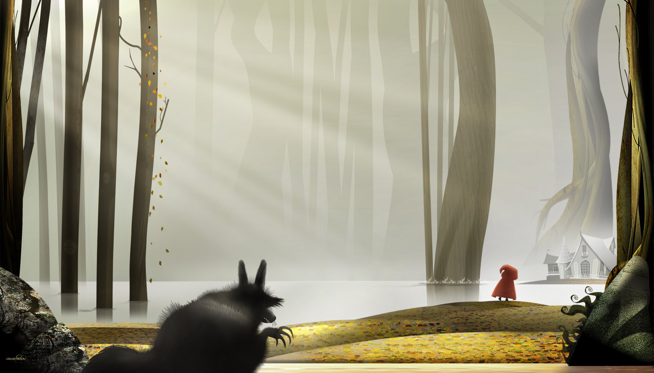 Conte sur le petit chaperon rouge et le loup gris - fond d'écran de bureau