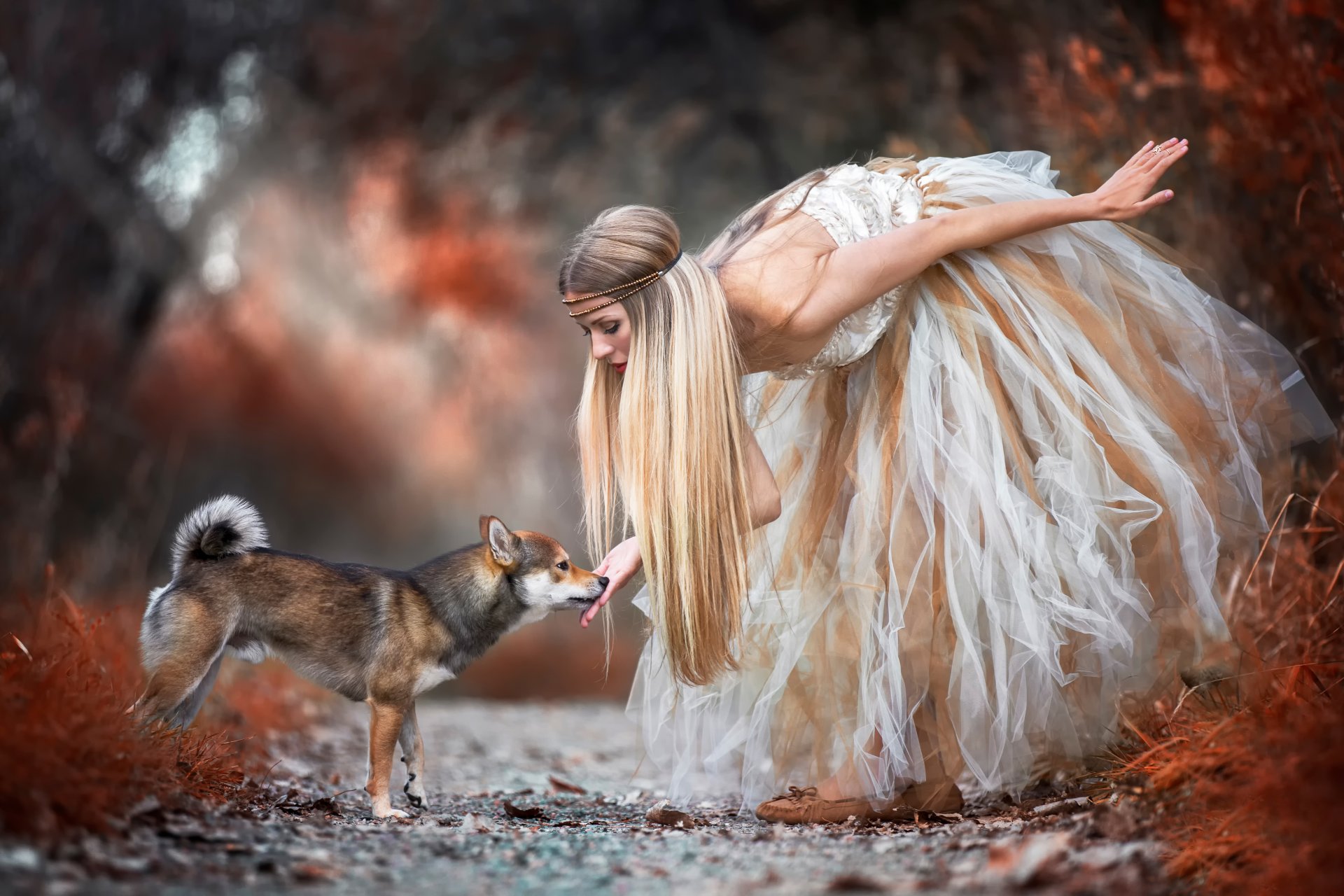 Tags:rencontre avec fée en bois, shiba inu, fille, robe, forêt, chien