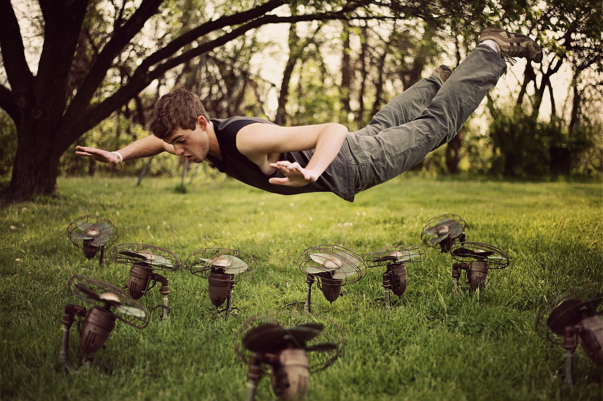 Le gars qui surmonte la gravité à l aide de ventilateurs - fond d'écran de téléphone