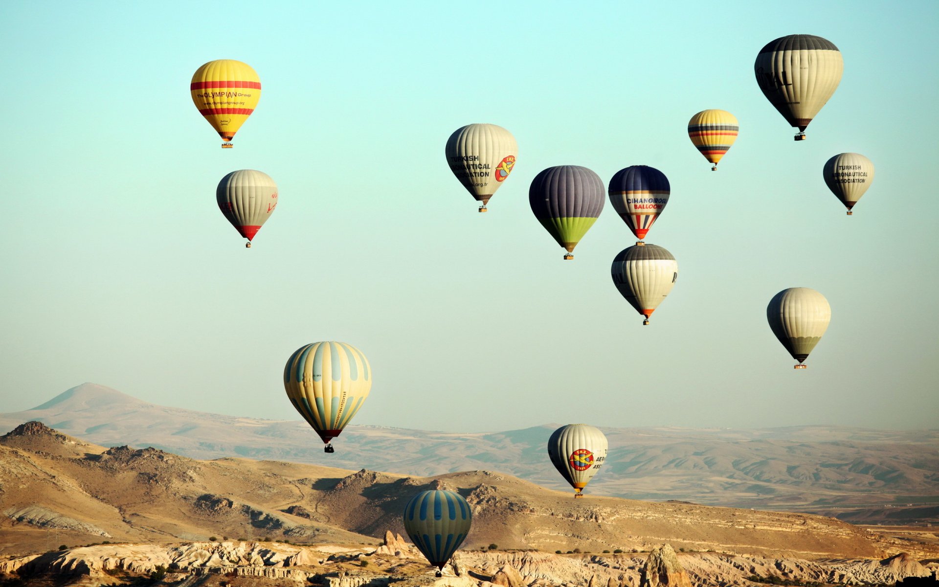 Beaucoup de ballons gonflables dans le ciel - fond d'écran de bureau