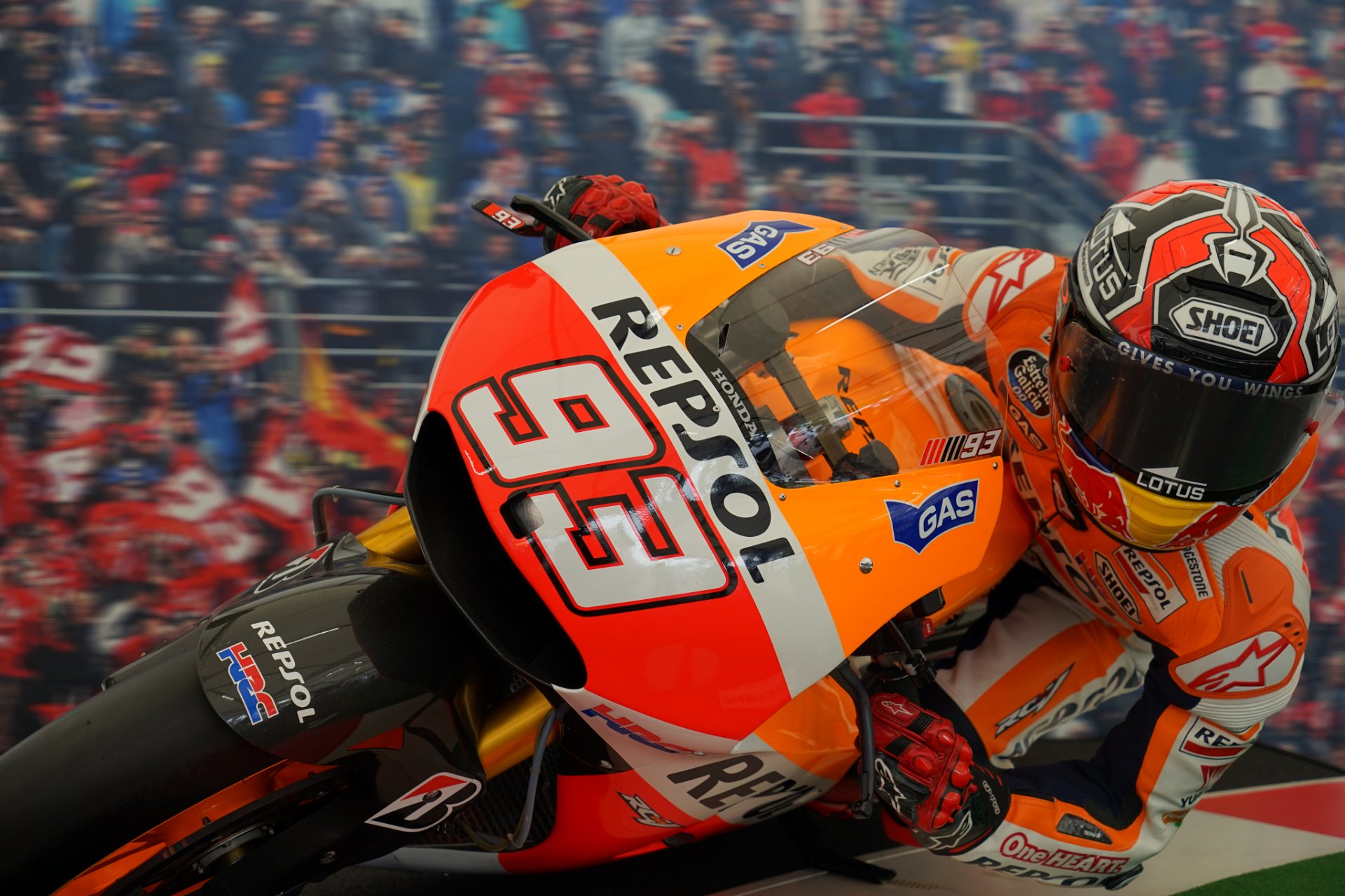 Coureur sur une moto rouge. Course de vélo - fond d'écran de bureau