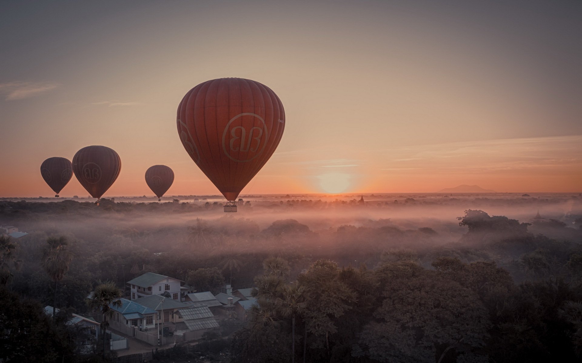 Ballons volent au coucher du soleil - fond d'écran de téléphone