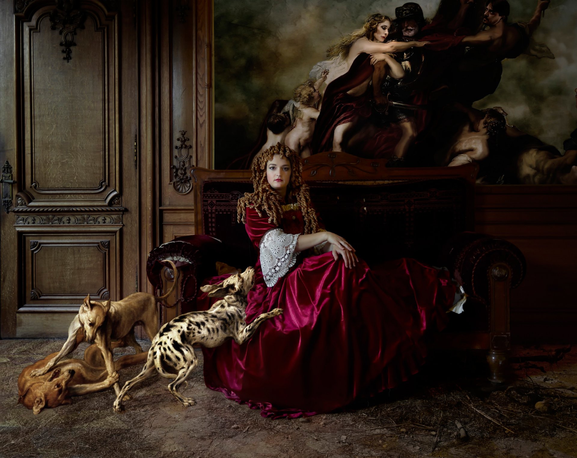 Fille avec des chiens sur le fond de l image - fond d'écran de bureau