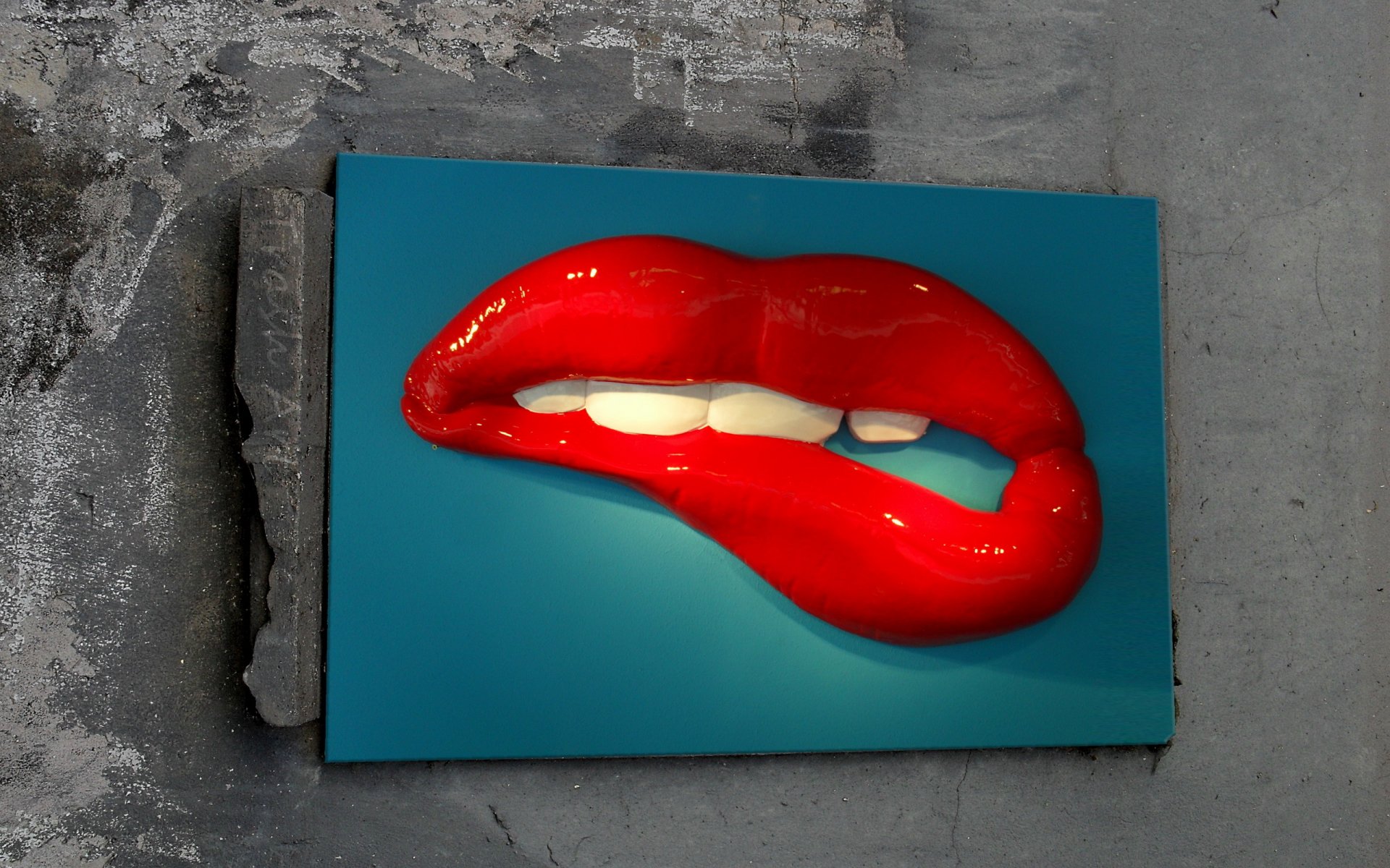Mordre les lèvres rouges brillantes - fond d'écran de bureau