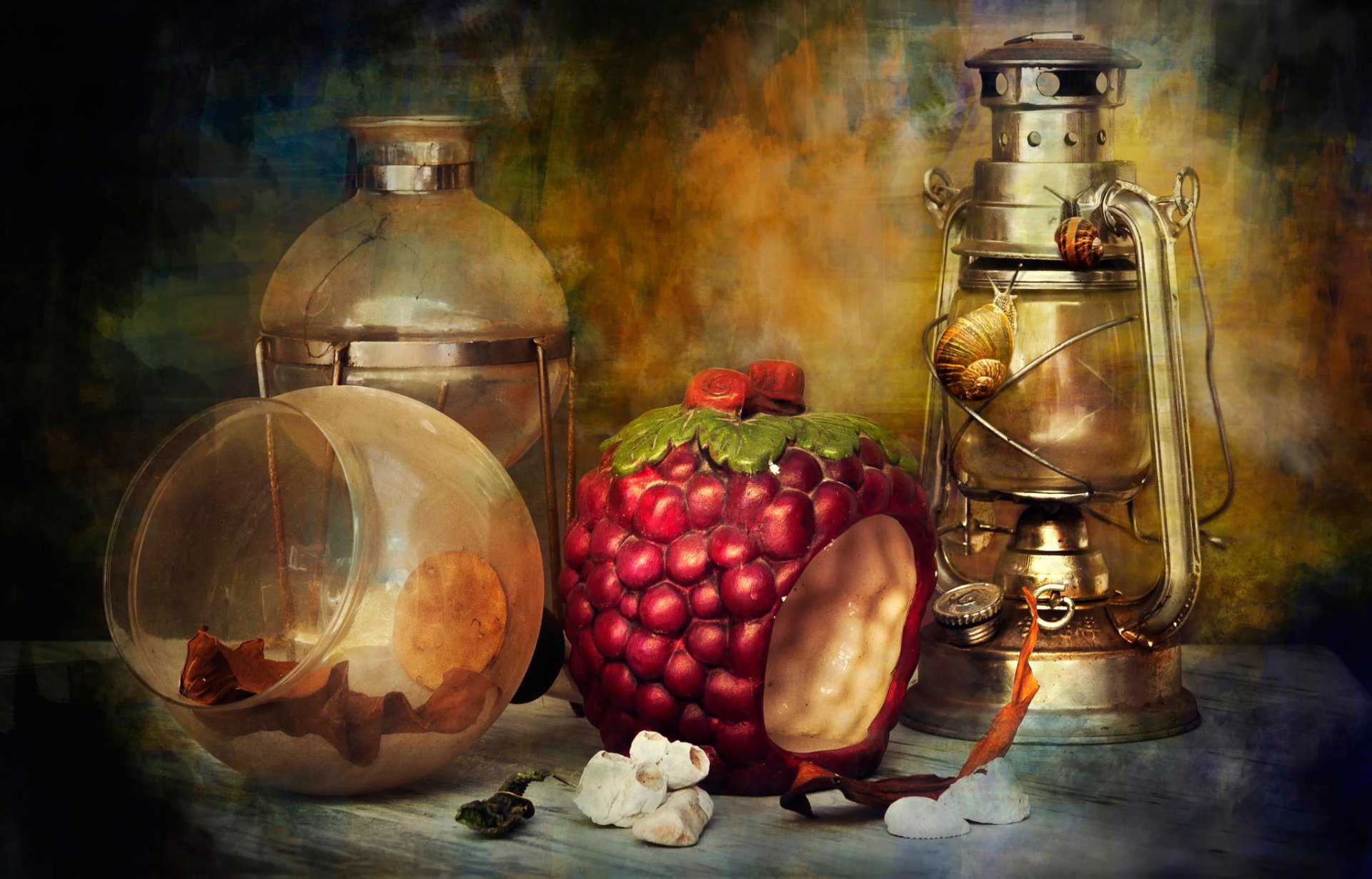 théière lampe escargots nature morte