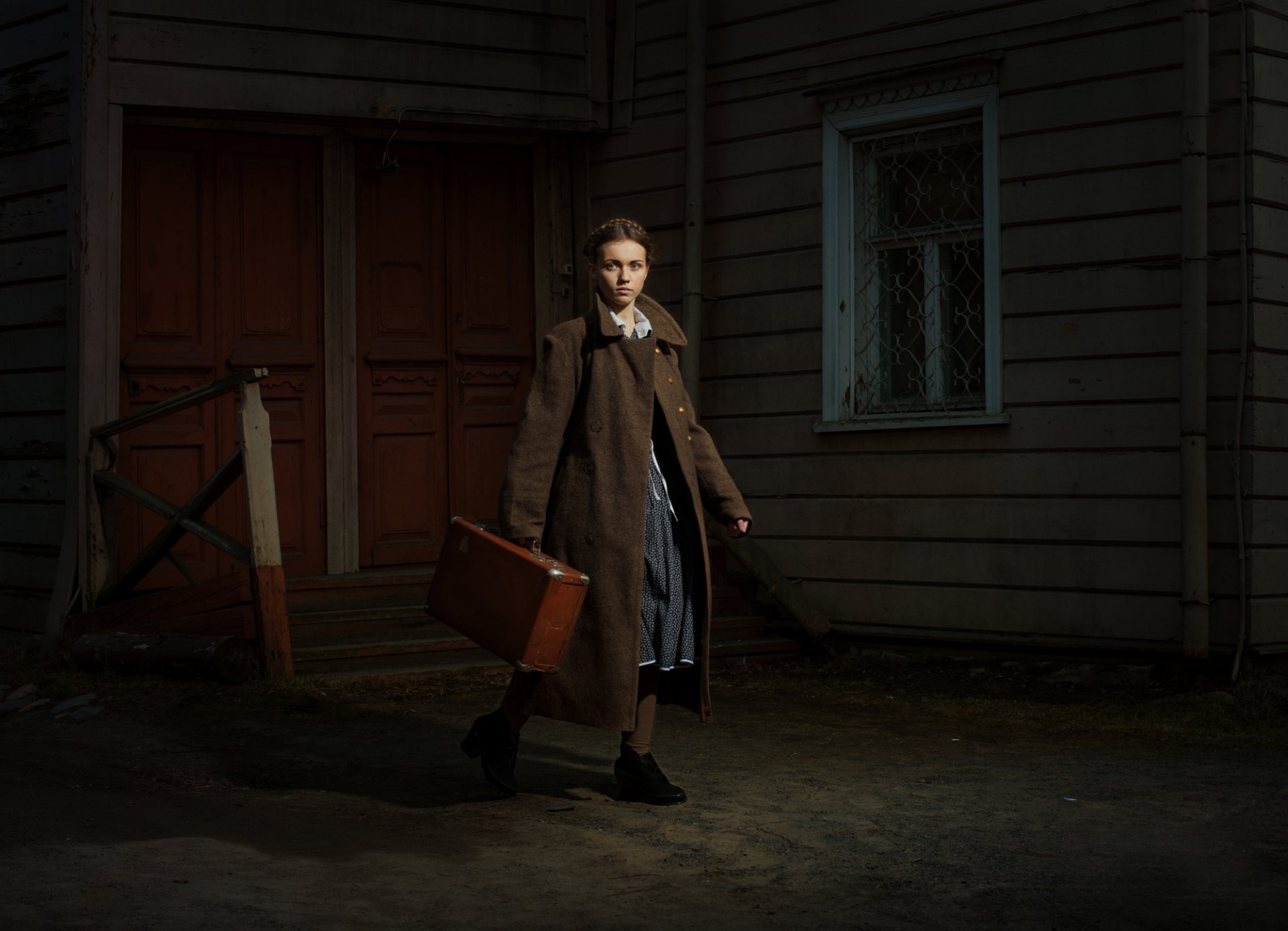 Photo Vintage d une fille avec une valise dans les mains - fond d'écran de bureau