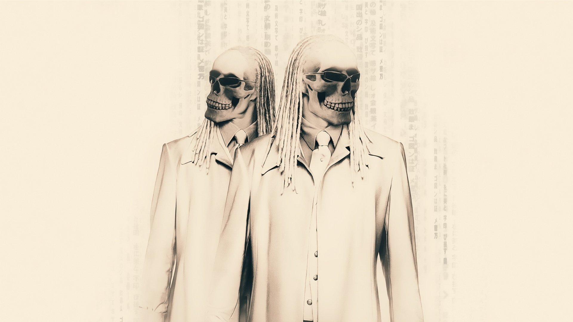 Squelettes en costumes blancs avec des dreadlocks - fond d'écran de bureau
