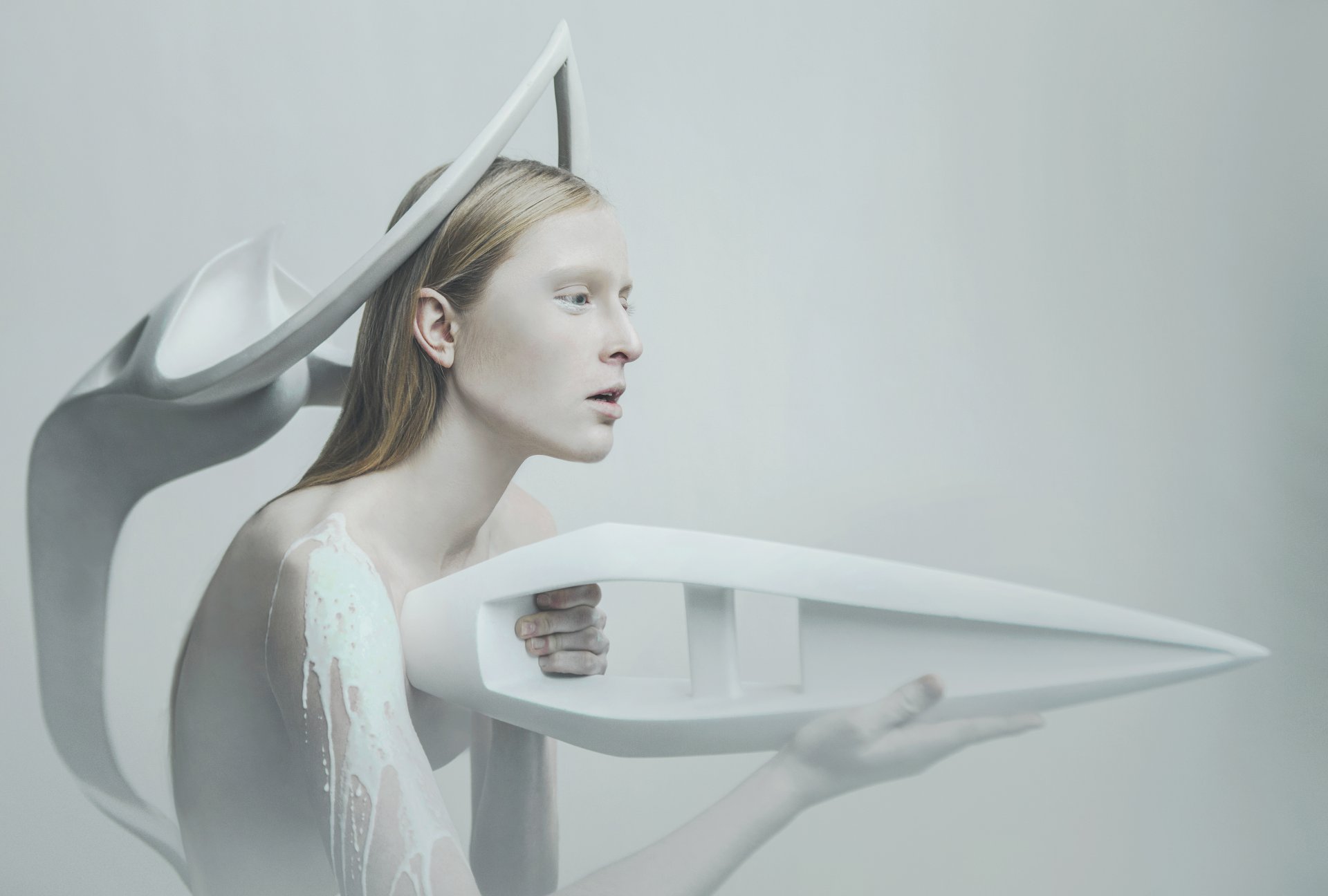 Fille de profil avec un motif sur le visage sous la forme d'une plante grimpante
