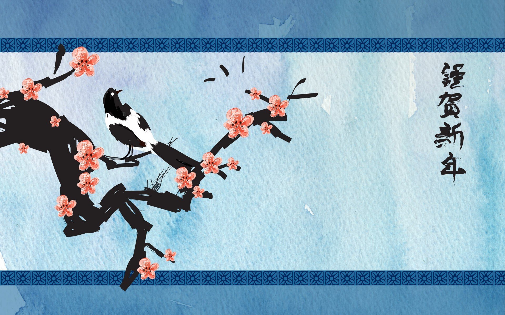Tags:dessin, sakura, arbre, fleurs, oiseau, hiéroglyphes