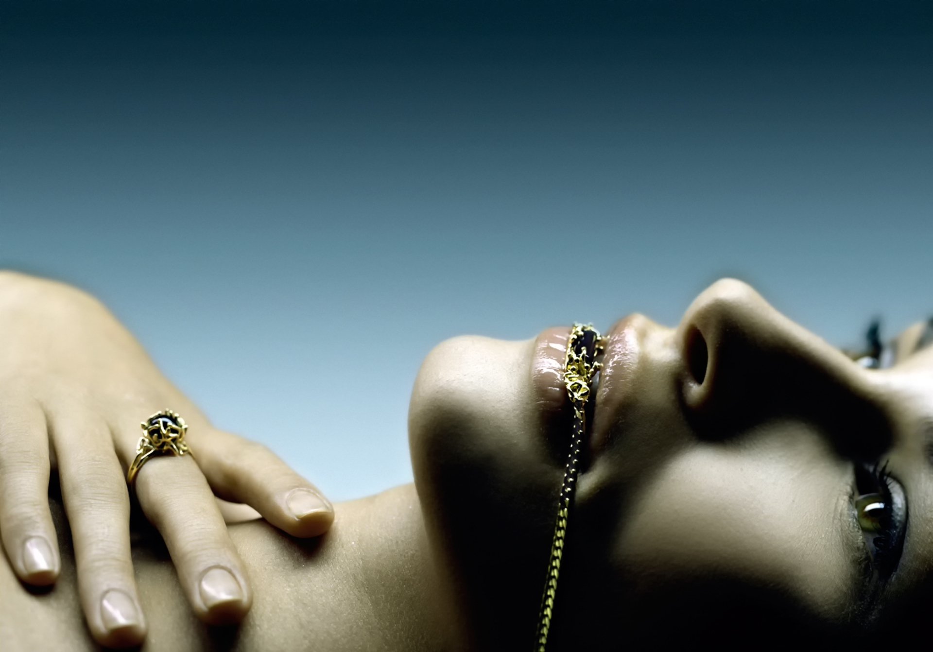 Fille avec des ornements sur fond bleu - fond d'écran de téléphone