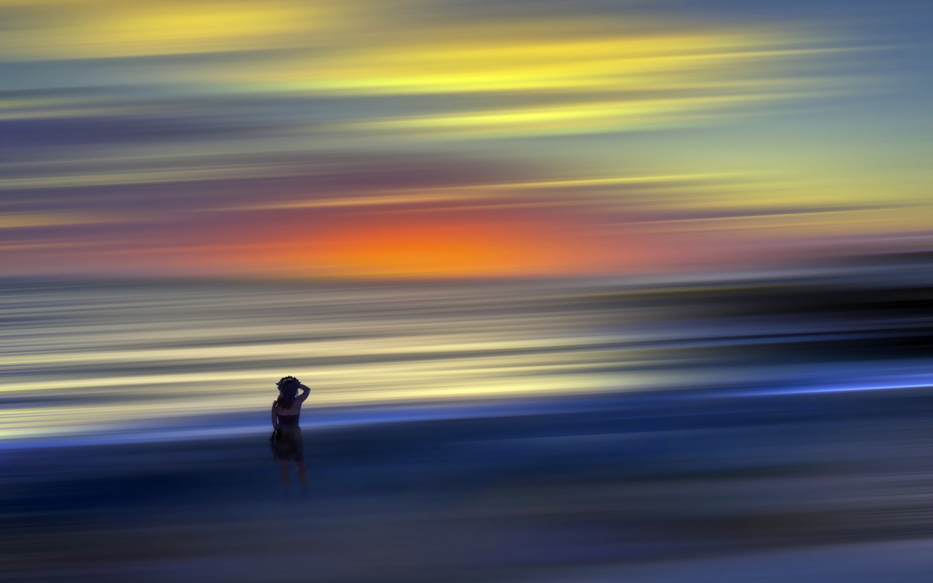 Les rayures multicolores créent l illusion d un coucher de soleil sur la mer - fond d'écran de téléphone