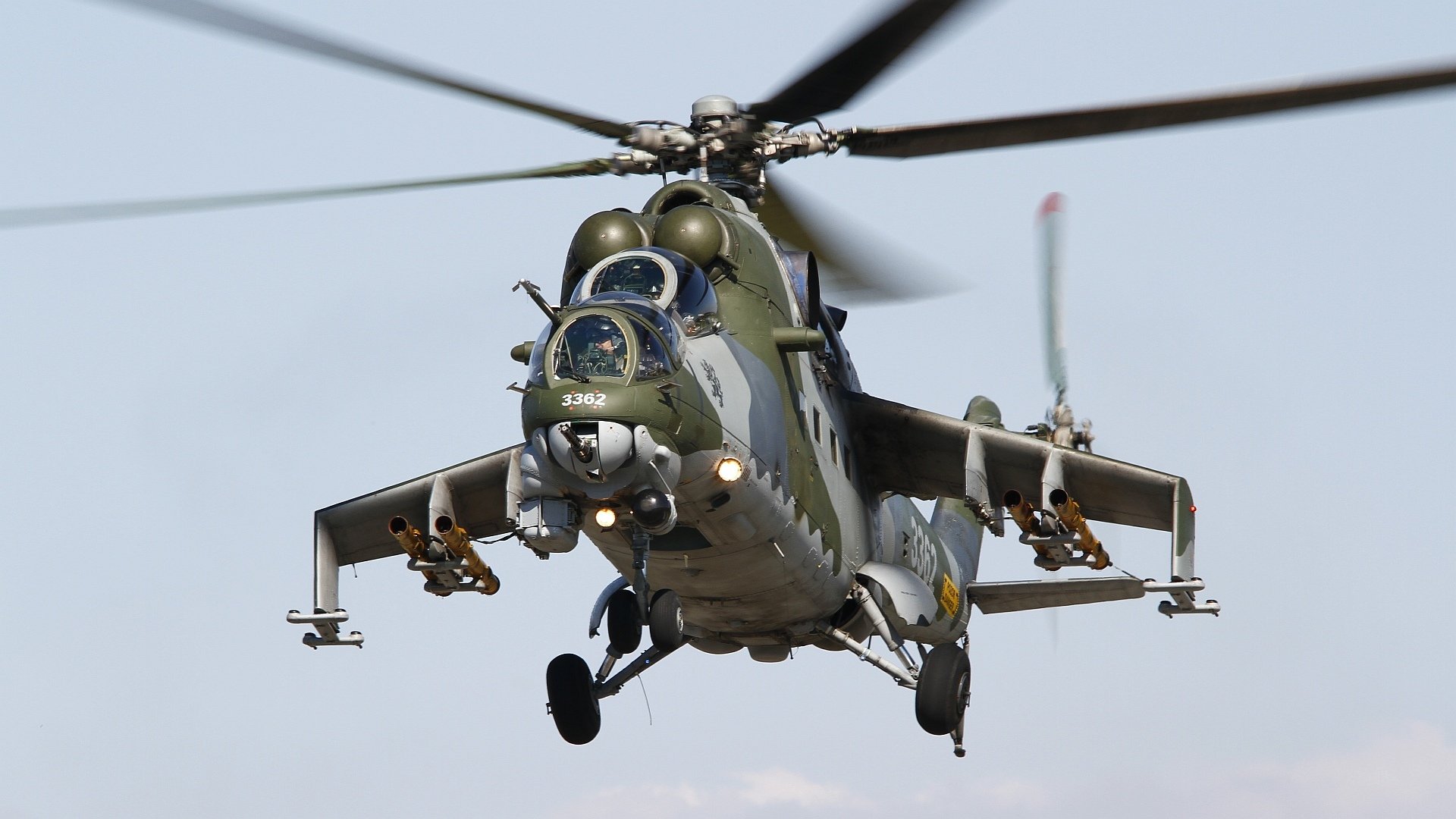 Avion soviétique hélicoptère mi-24 avec des missiles