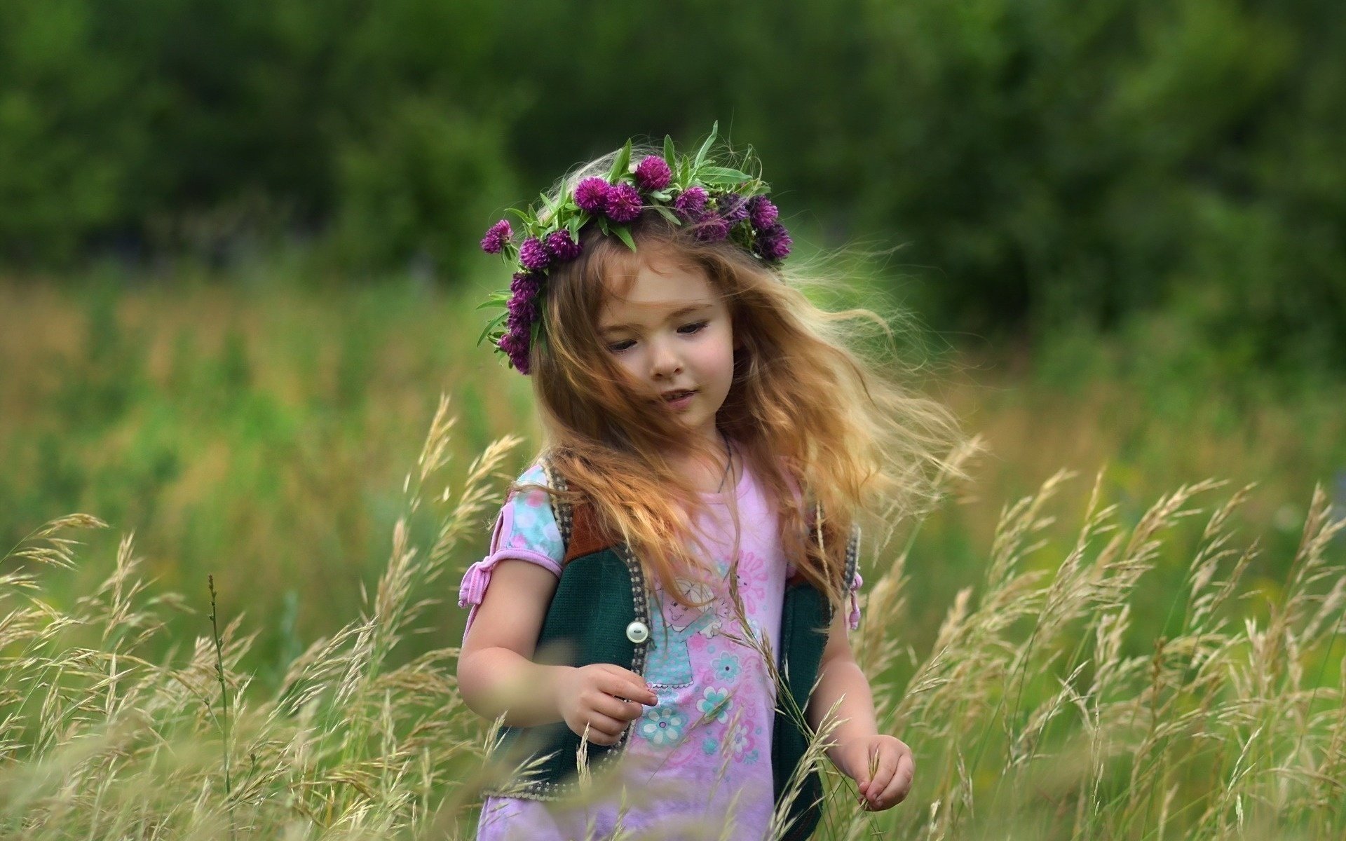 Une fille dans une Couronne court sur un champ. Paysage d'été