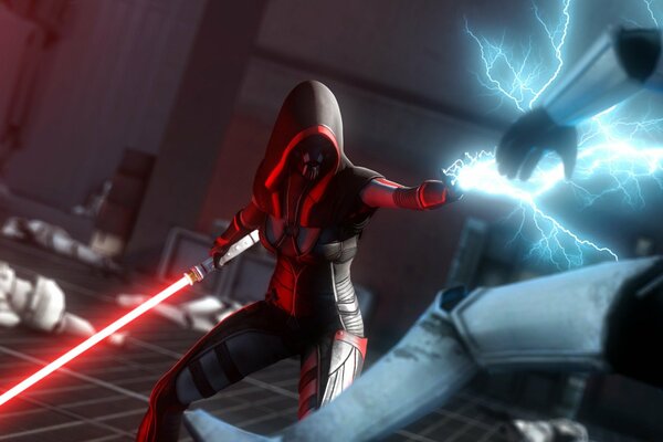 Illustration sur le thème de star wars avec stormtrooper et sabre laserIllustration sur le thème de Star Wars avec Stormtrooper et sabre laser