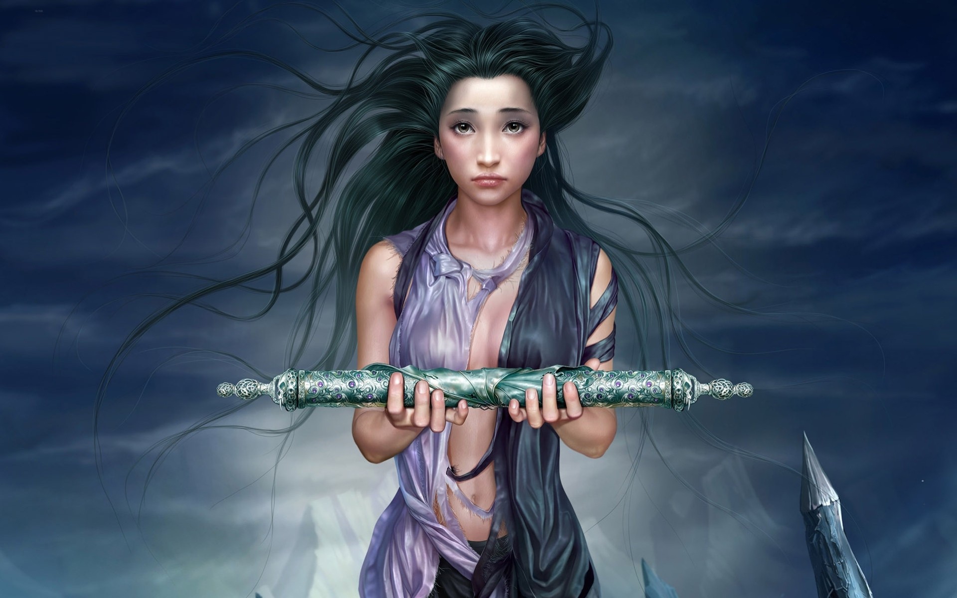 Visage de la jeune fille aux yeux noirs dans le style fantasy