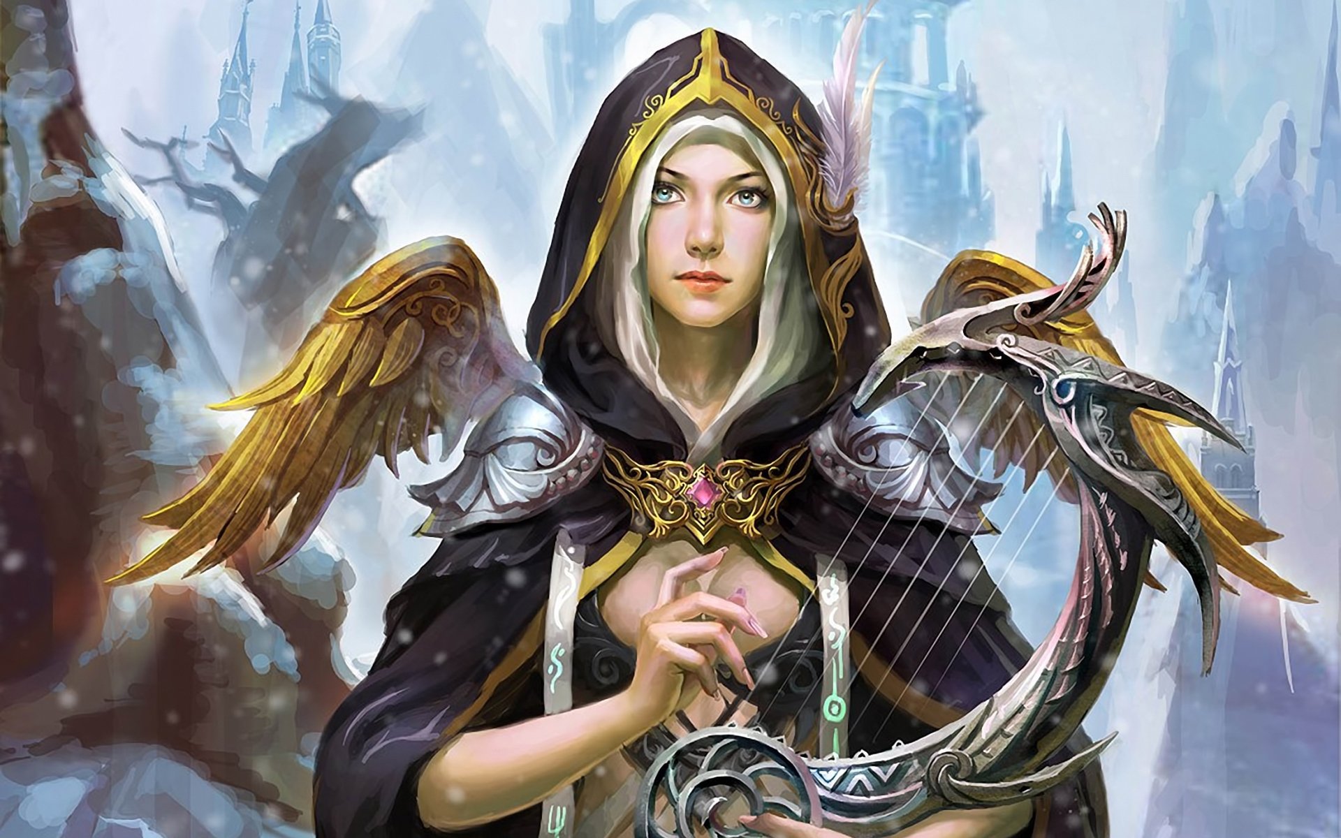Art art, ange tenant une épée sur elle armure et casque, ailes sans armureArt art, ange tenant une épée sur elle armure et casque, ailes sans armure