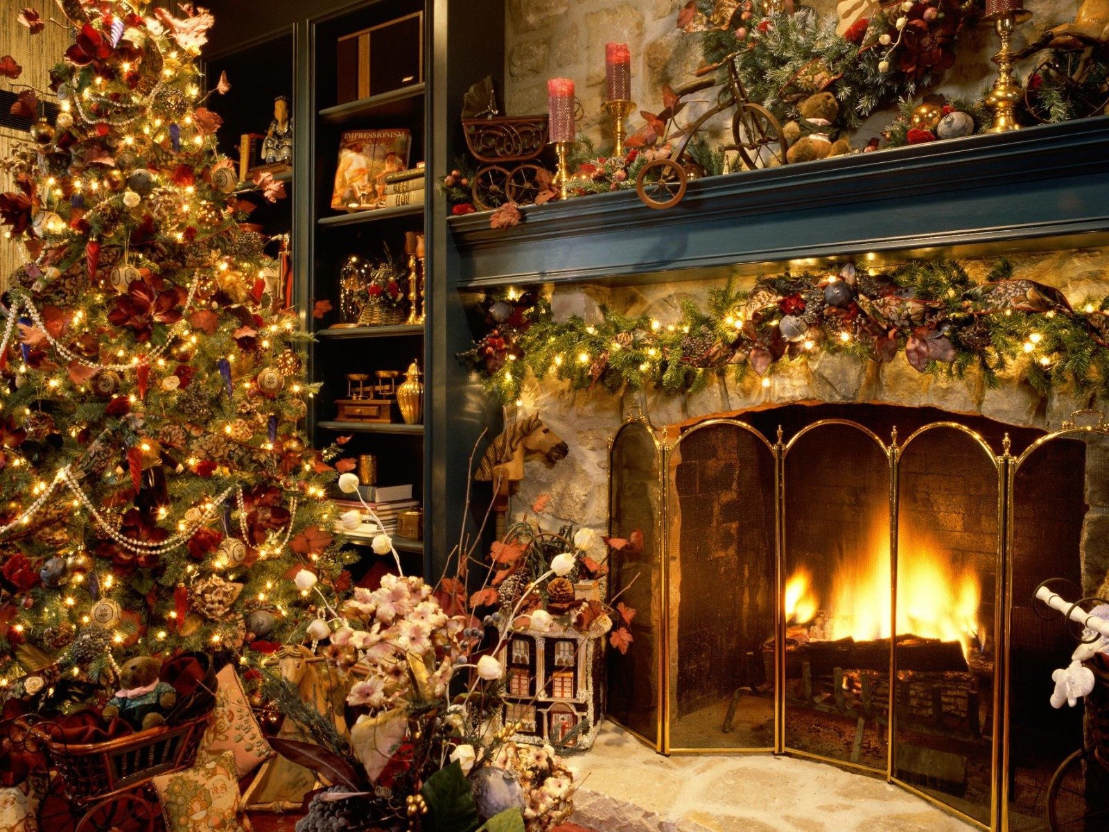 Fille avec de la bière près de la cheminée pour le nouvel anFille avec de la bière près de la cheminée pour le nouvel an
