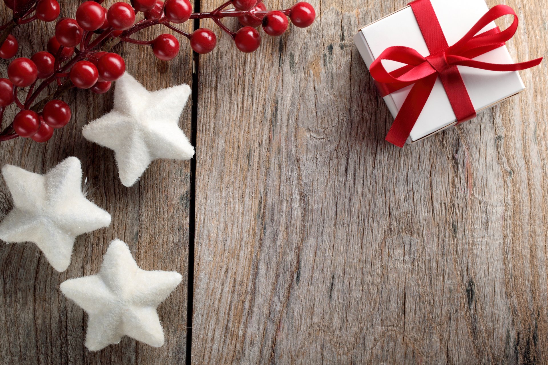 Cadeau du nouvel an à côté du chapeau du père noëlCadeau du nouvel an à côté du chapeau du père Noël