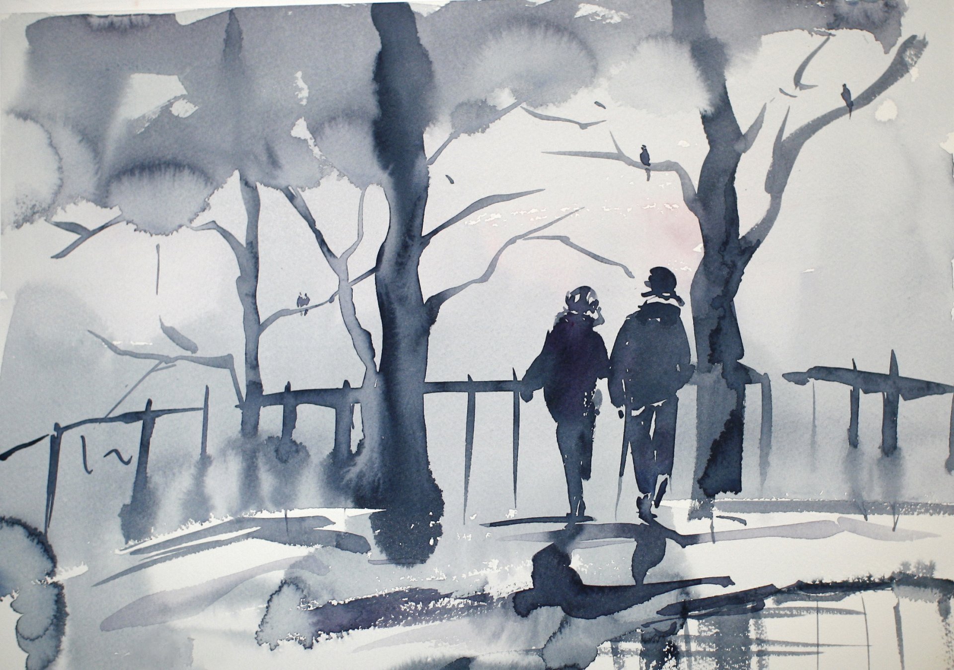 Le couple dans l'image est représenté à l'aquarelleLe couple dans l'image est représenté à l'aquarelle