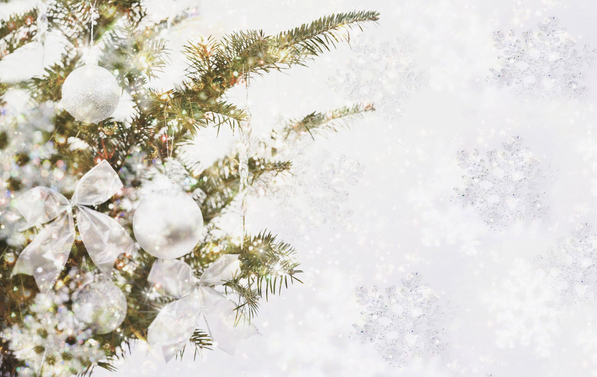 Boule blanche et bleue sur une branche d'arbre de noël dans la neigeBoule blanche et bleue sur une branche d'arbre de Noël dans la neige