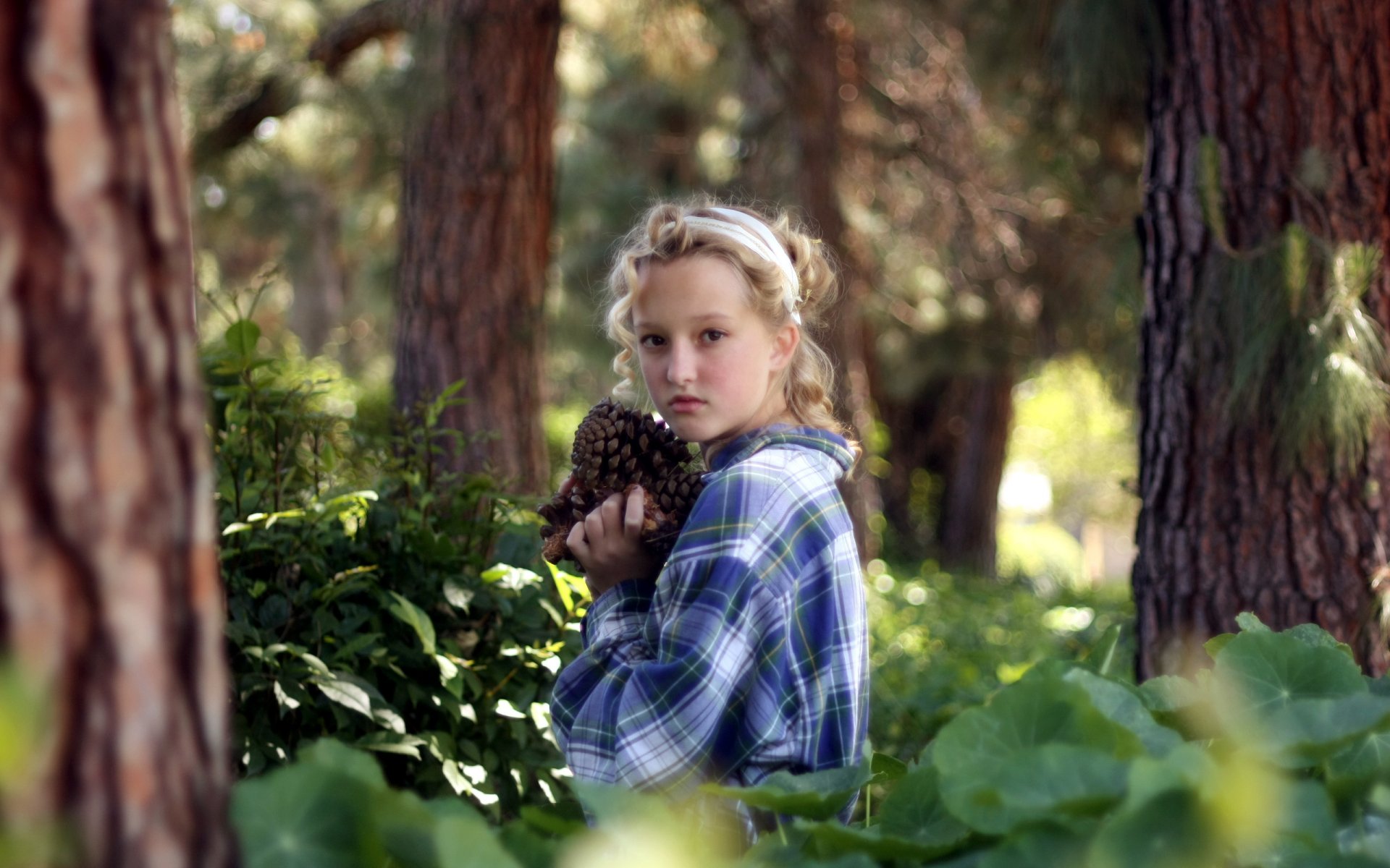 Fille assise sur les branches sous la voûte des arbresFille assise sur les branches sous la voûte des arbres