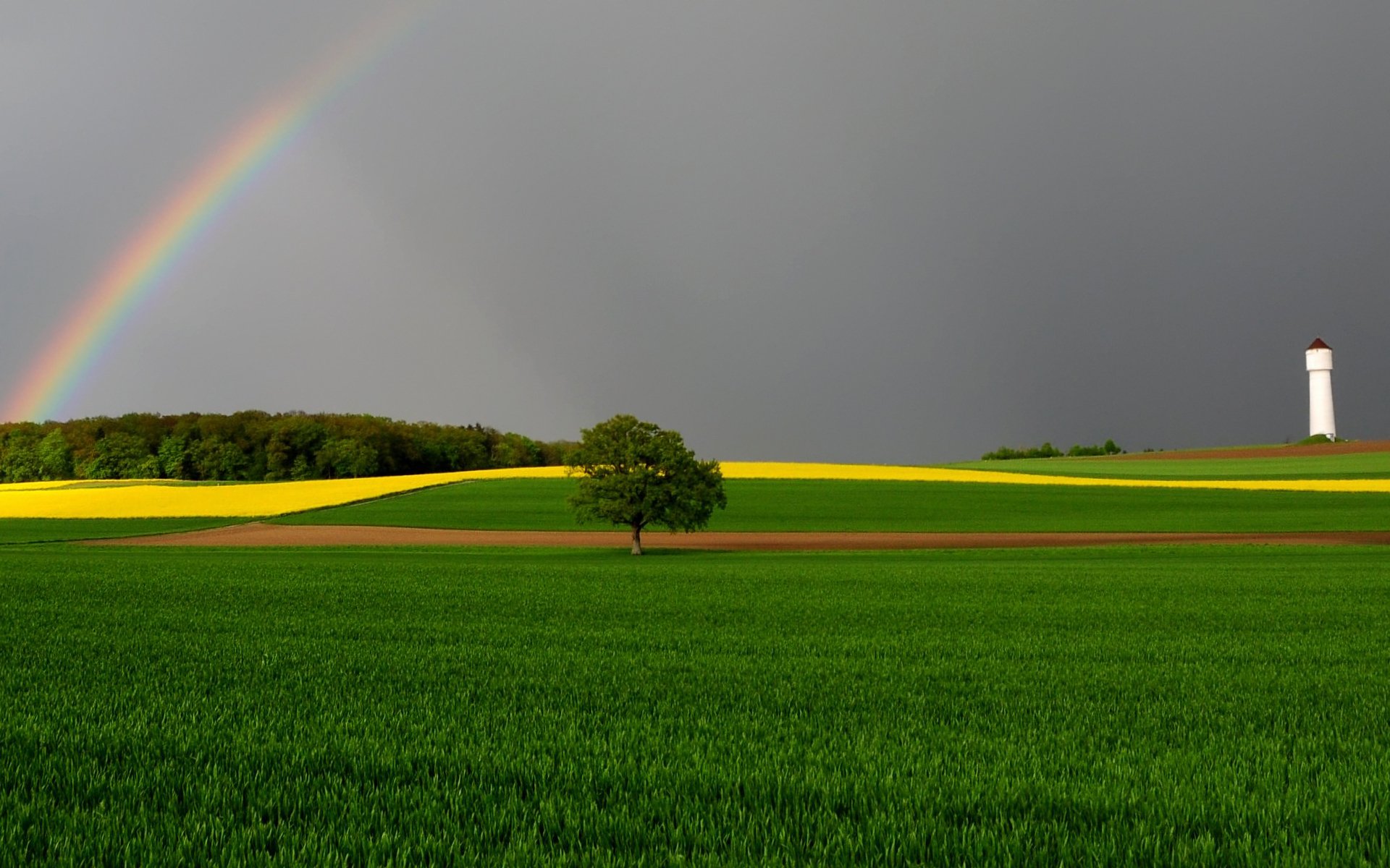 Arc-en-ciel sur le champ après la pluie
