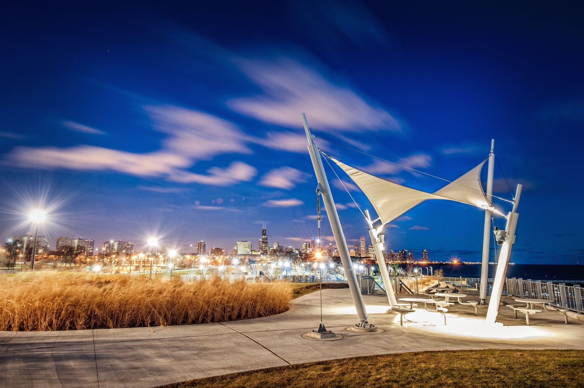 Beau panorama de l'architecture des états-unis dans la baie avec des yachtsBeau Panorama de l'architecture des États-Unis dans la baie avec des yachts