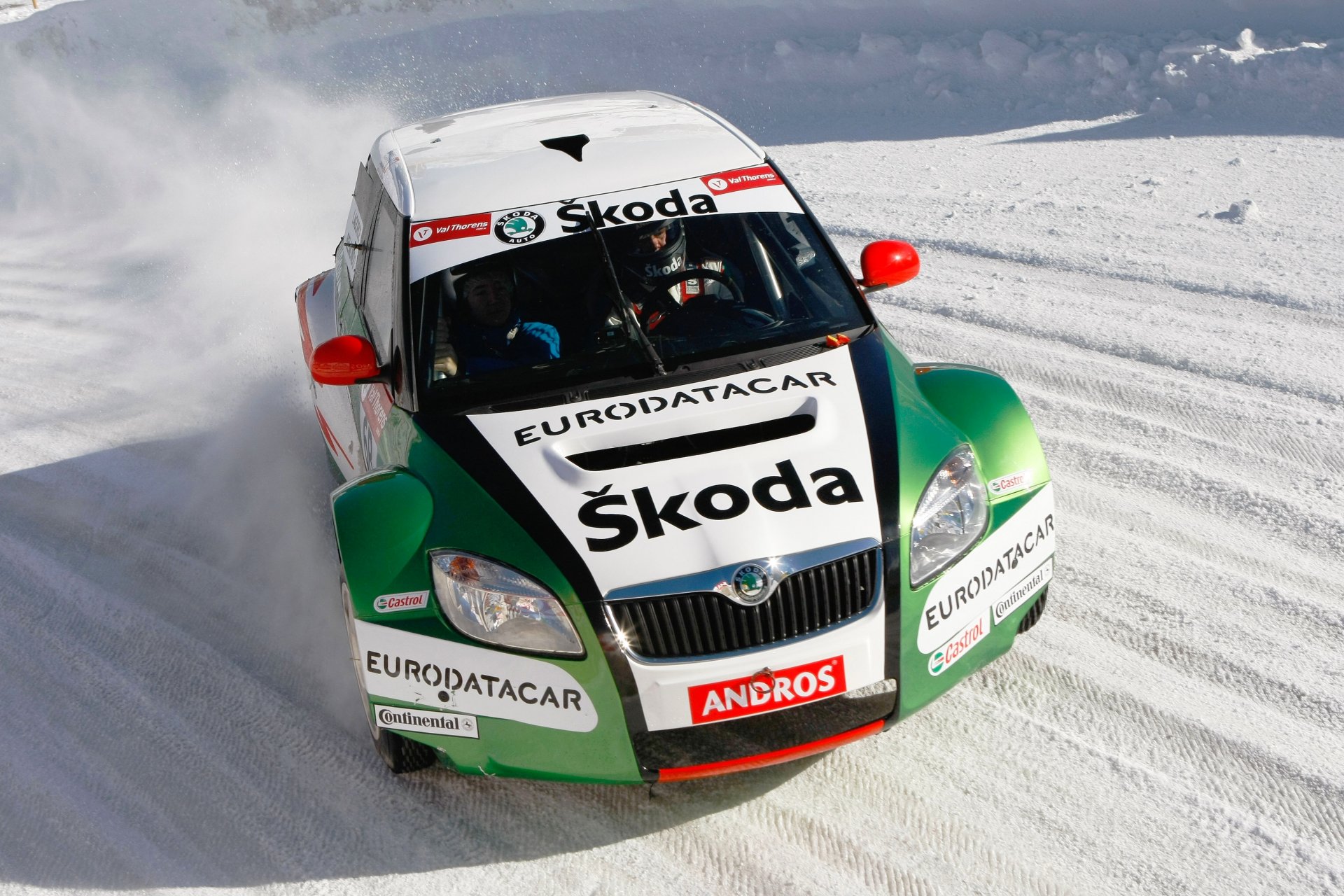 La skoda fabia sportive entre dans un virage enneigéLa Skoda Fabia sportive entre dans un virage enneigé
