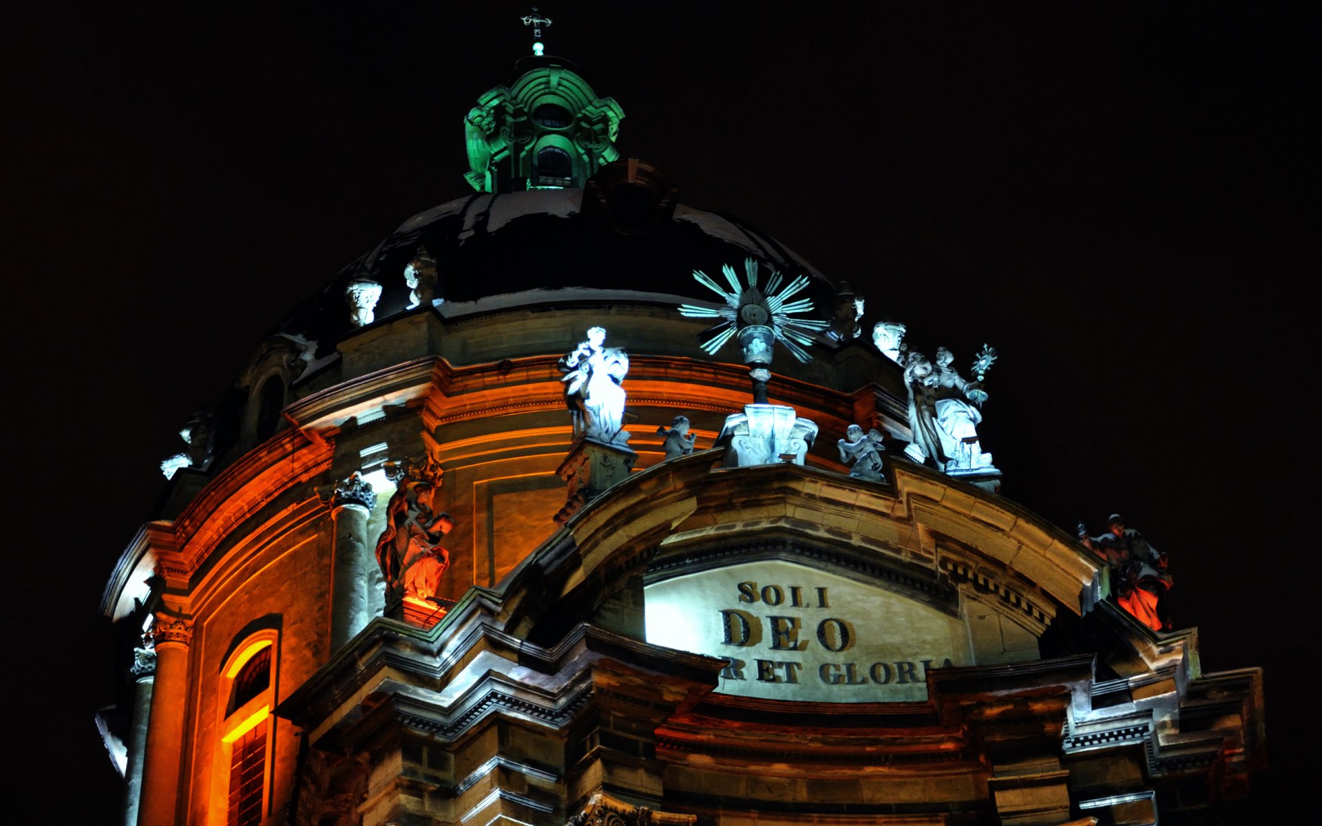 Stade lumineux dans la nuit. Rétro-éclairage rouge