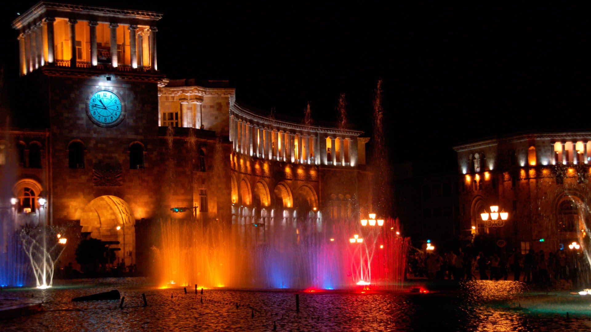 Coucher de soleil sur le lac dans les montagnes de l'Arménie