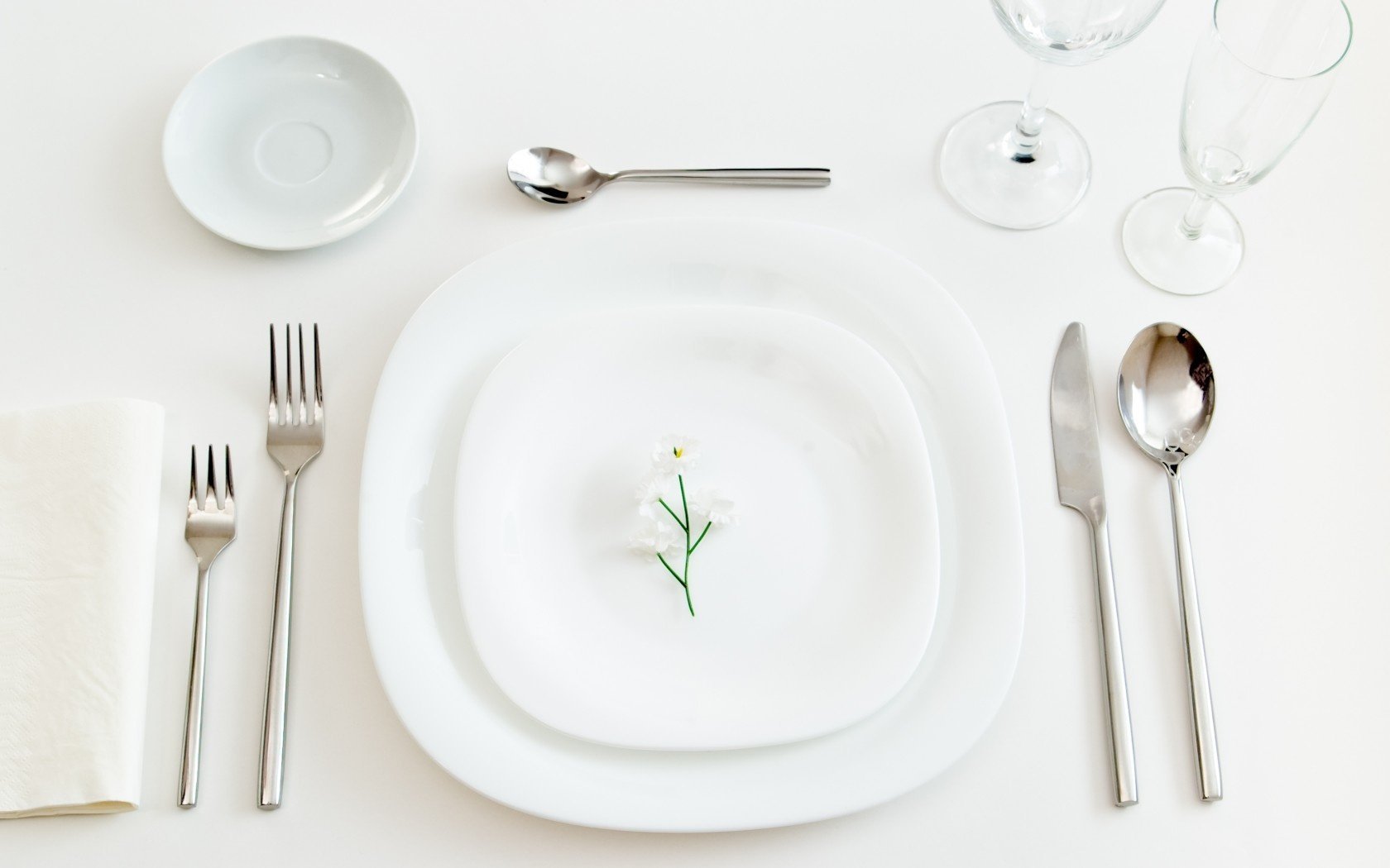 Fleur sur une plaque blanche sur une table blanche avec des appareils