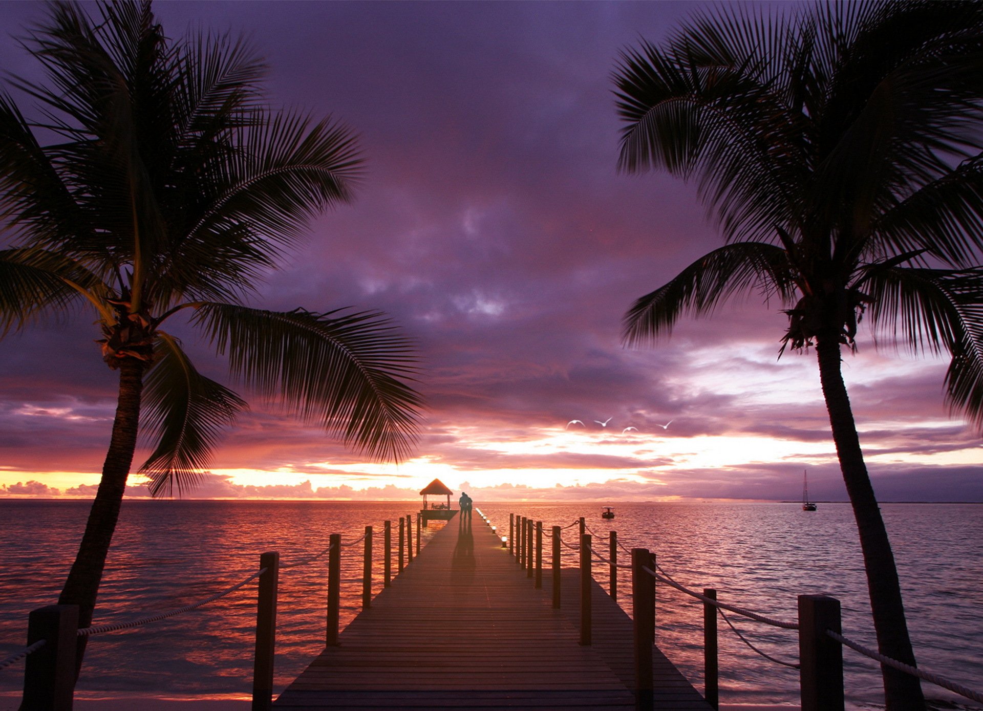Vagues de l'océan au coucher du soleil avec des palmiersVagues de l'océan au coucher du soleil avec des palmiers