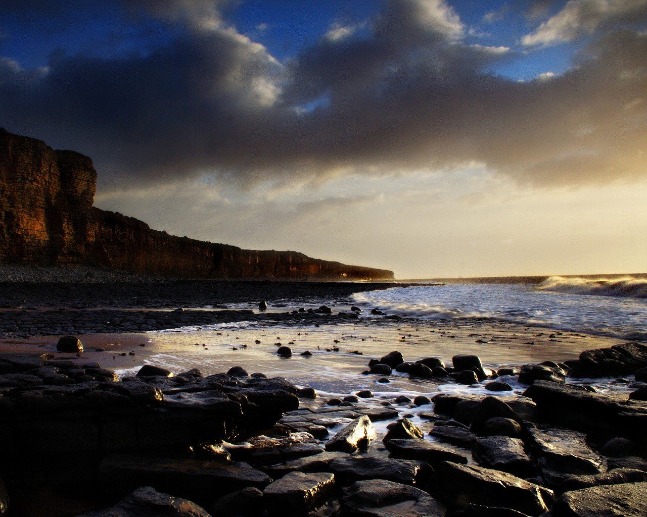 Vue séduisante sur la mer et les rochers pendant le brouillard