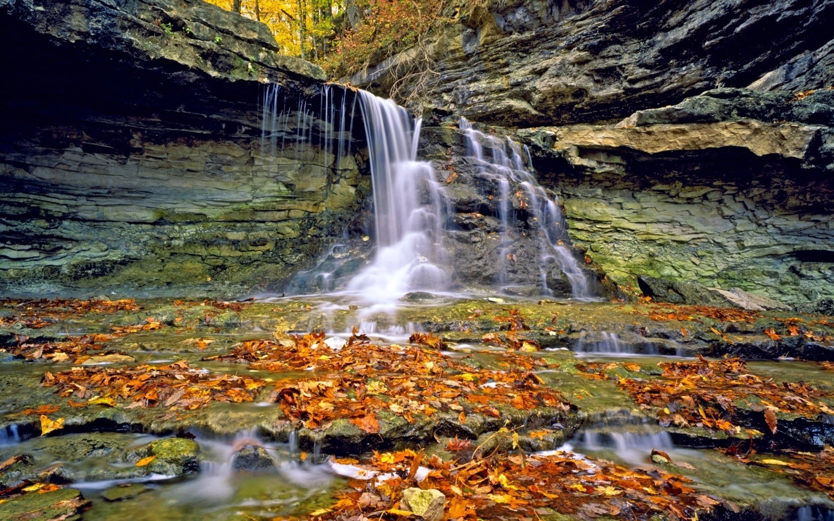 Paysage d'automne avec un chemin parsemé de feuilles mortesPaysage d'automne avec un chemin parsemé de feuilles mortes