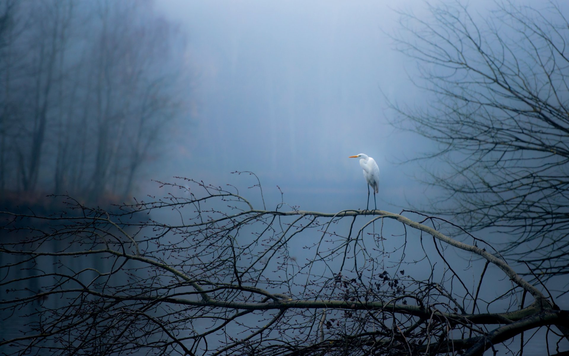 Cigogne sur le lac d'automne
