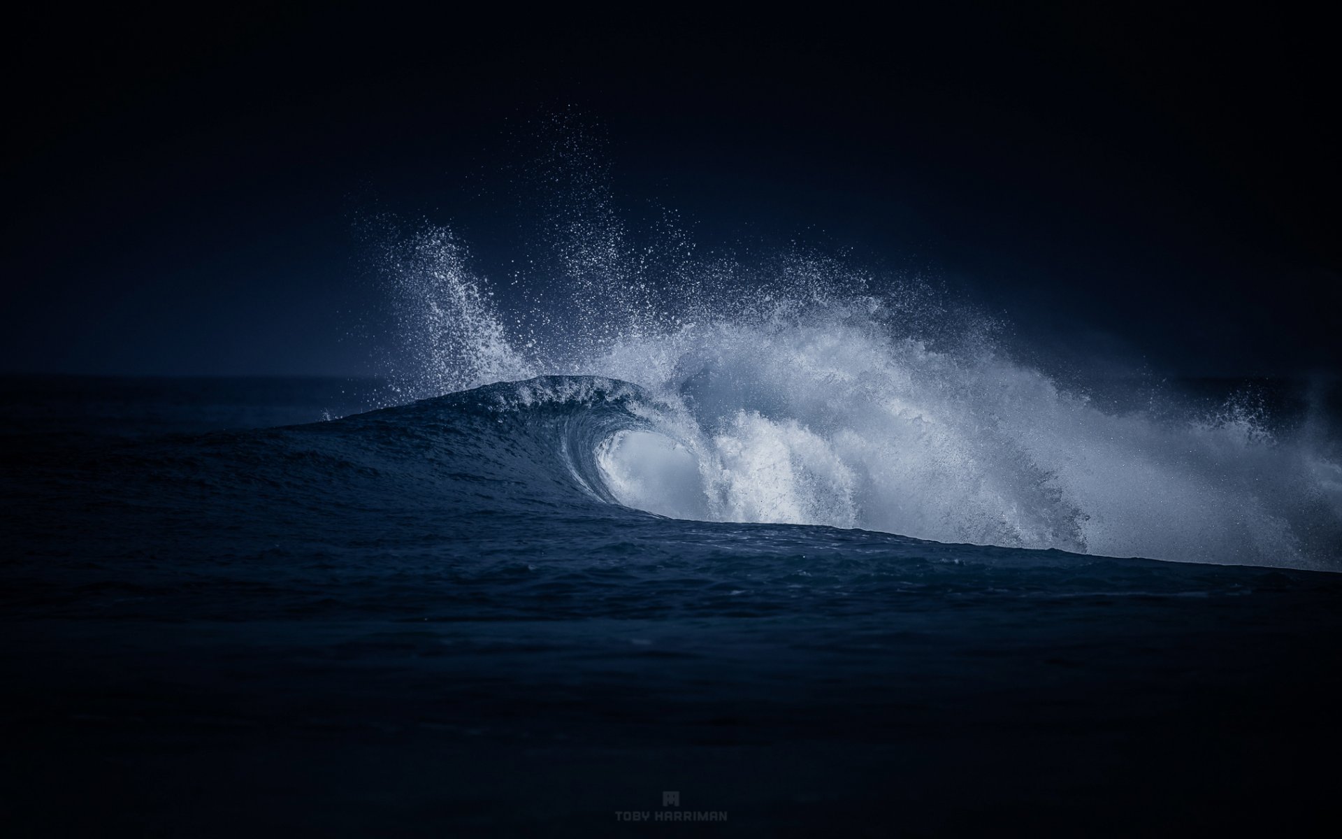 Lune dans le ciel nocturne au-dessus de l'eau et de la montagneLune dans le ciel nocturne au-dessus de l'eau et de la montagne