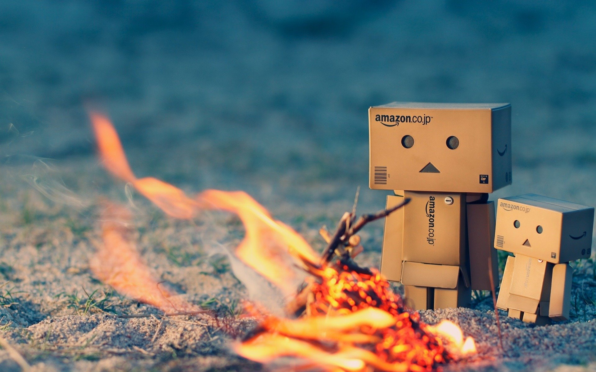 Un couple en carton человчеков данбо pèlerin auprès d'un feu de campUn couple en carton человчеков данбо pèlerin auprès d'un feu de camp