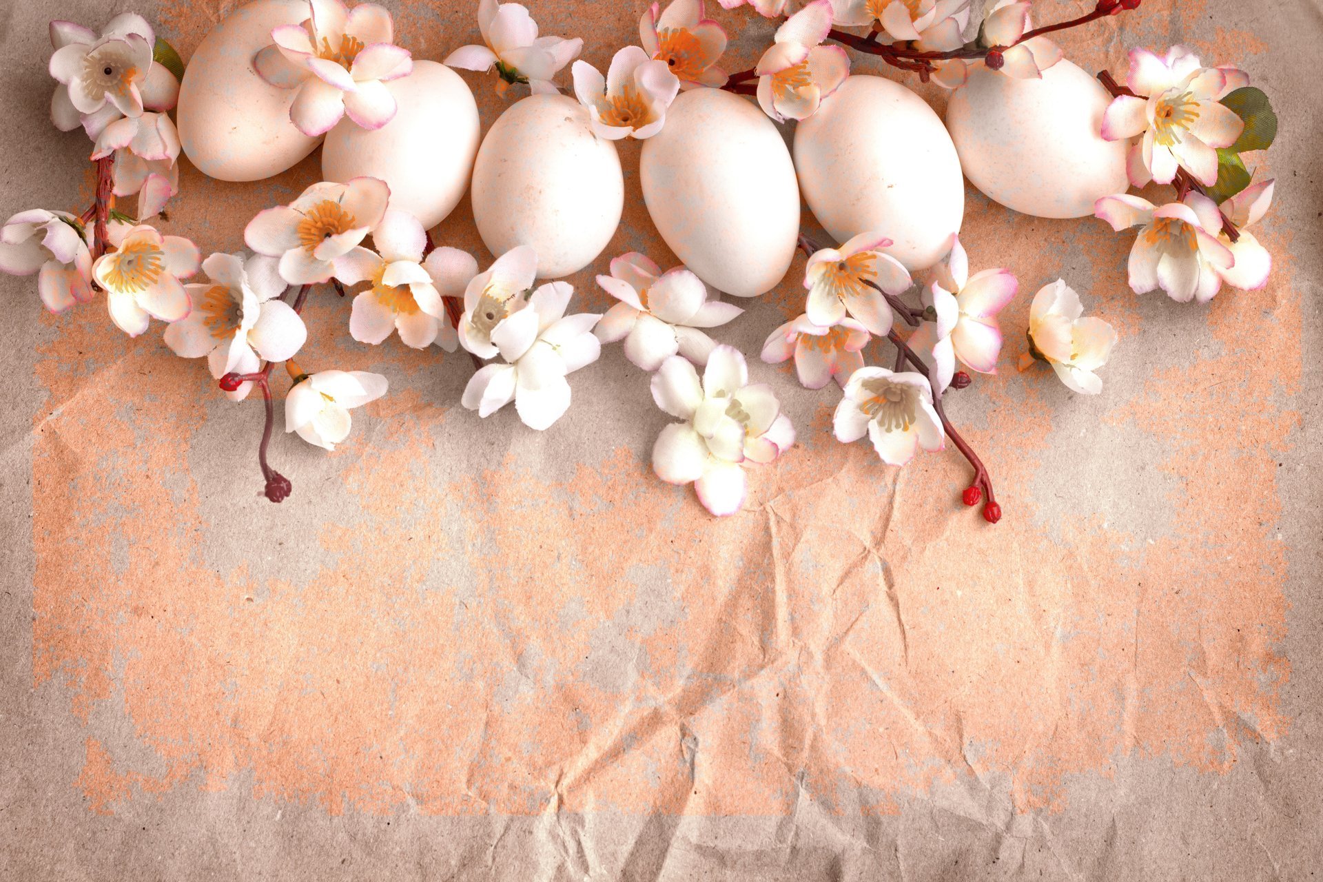 Thème de pâques panier avec des oeufs et des fleursThème de Pâques panier avec des oeufs et des fleurs
