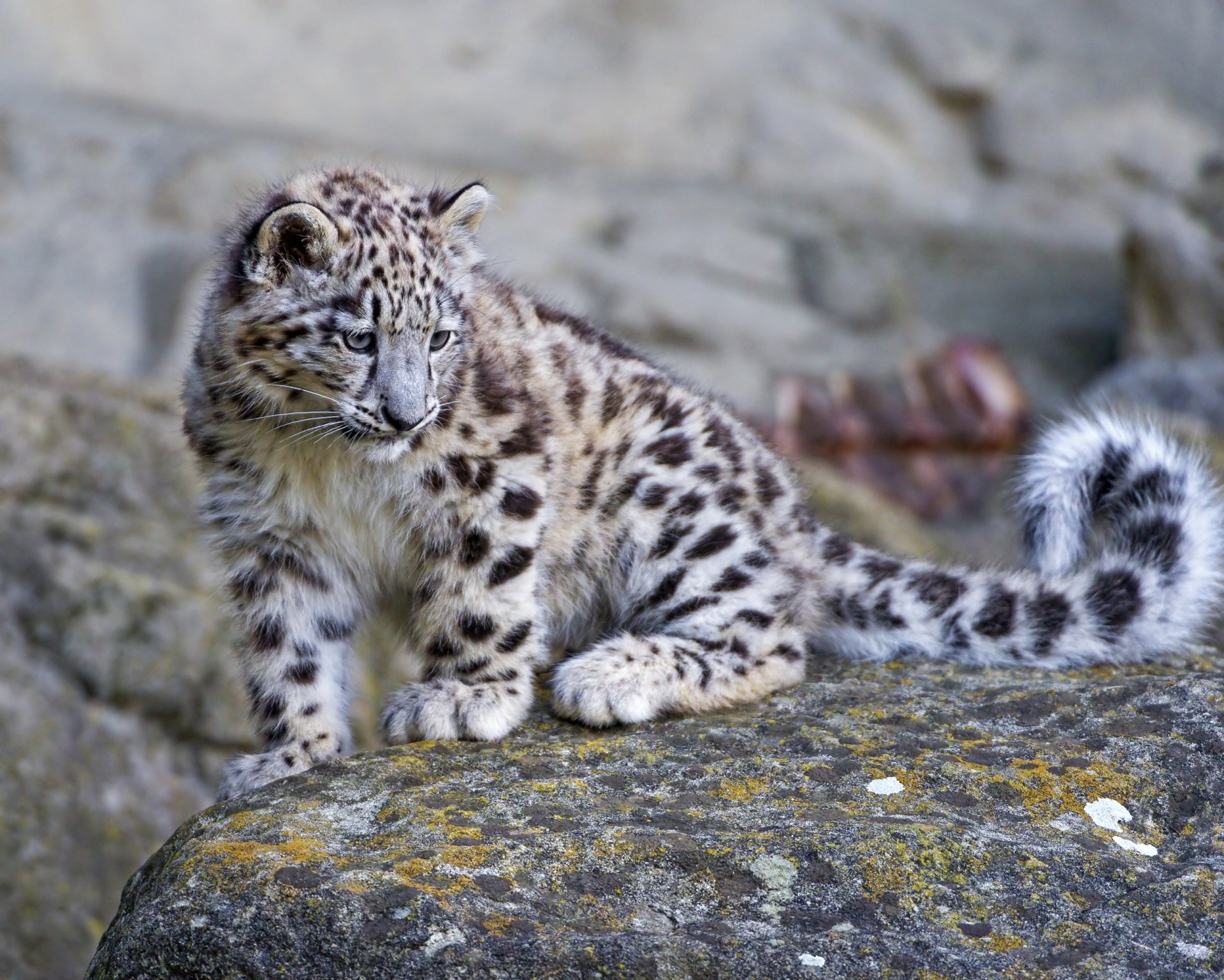 Paire de léopards des neiges se trouve sur la pierrePaire de léopards des neiges se trouve sur la pierre